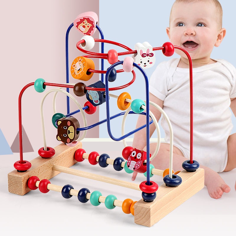 Talão Labirinto Brinquedo Para Crianças De Madeira Colorido Rolo Coaster Brinquedos Educativos Círculo Para Crianças Deslizante Contas Na Torção Do Fio Treinamento Criança Atenção Con @ @ Tar E Grasping Bilidade