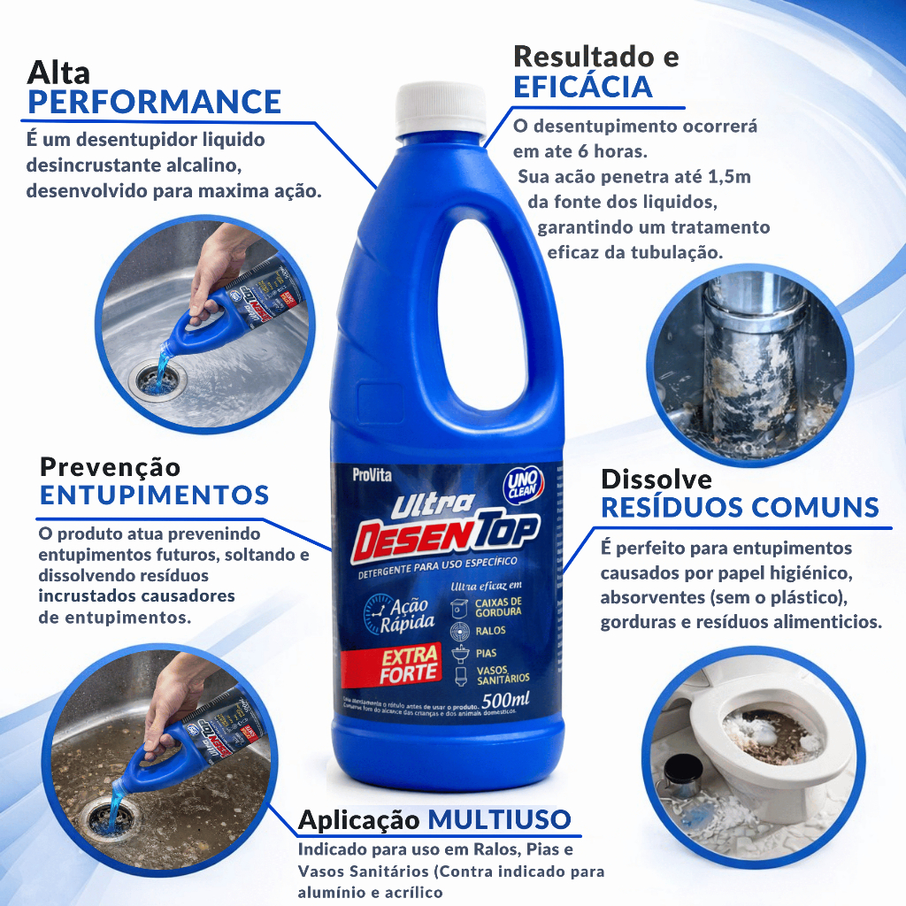 Desentupidor Líquido Ultra Desentop Cano Pia Ralo Fossa Vaso Sanitário Cozinha Caixas de Gordura