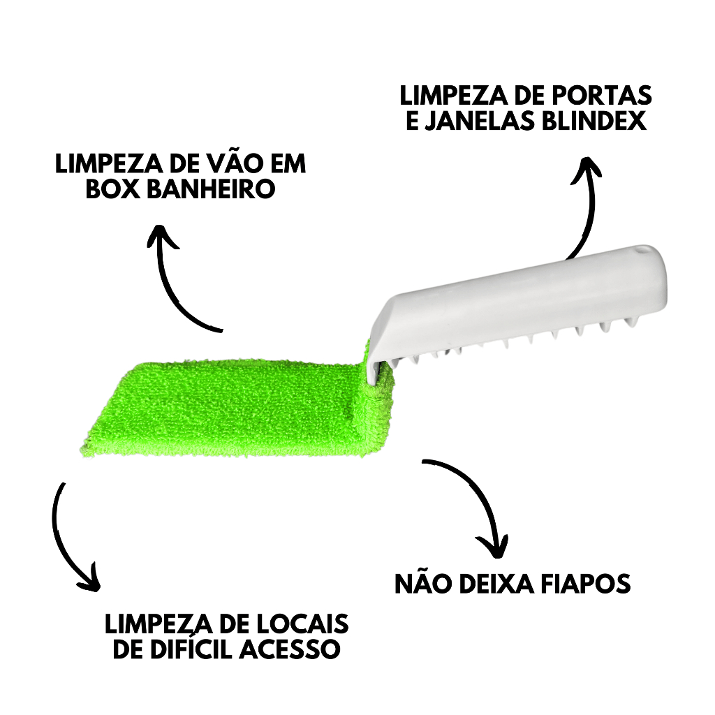 Limpador Vidros Frestas Vãos Fendas Box Janelas Blindex - 2 Luva Microfibra + SUPORTE REFORÇADO