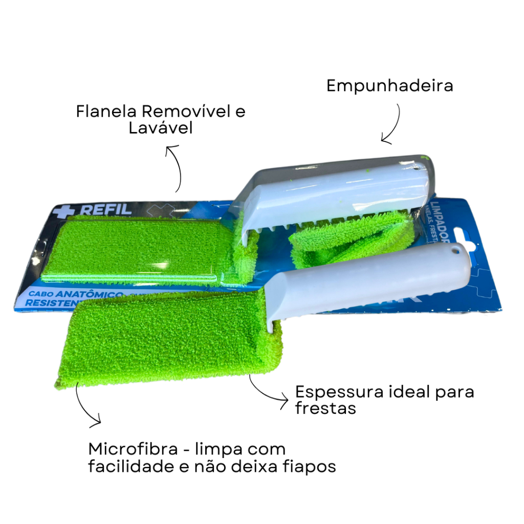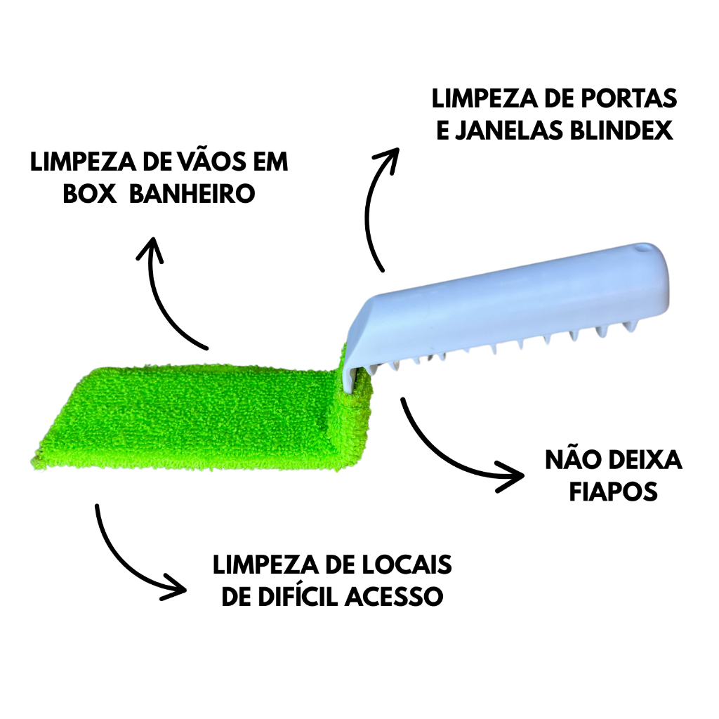 Kit Limpeza para Frestas Vãos Fendas Box e Janelas - Com Refil Microfibra