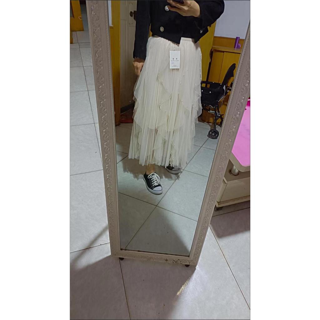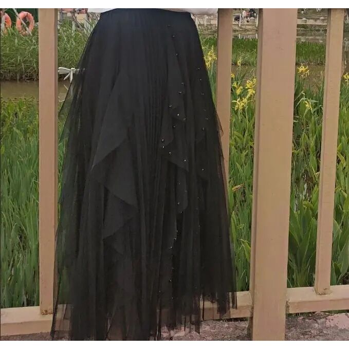 Saia de gaze plissada com gaze com contas
