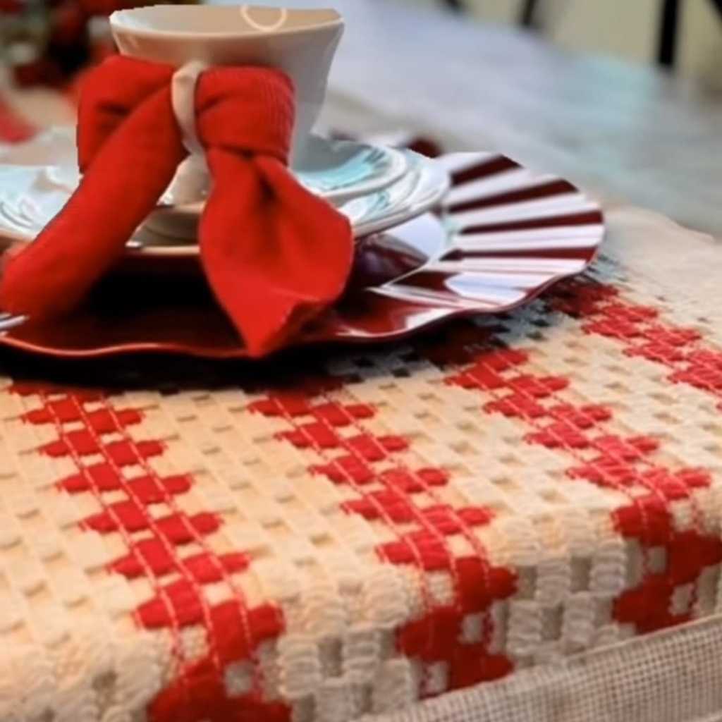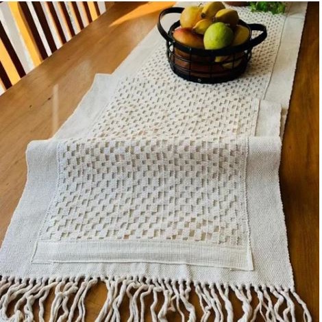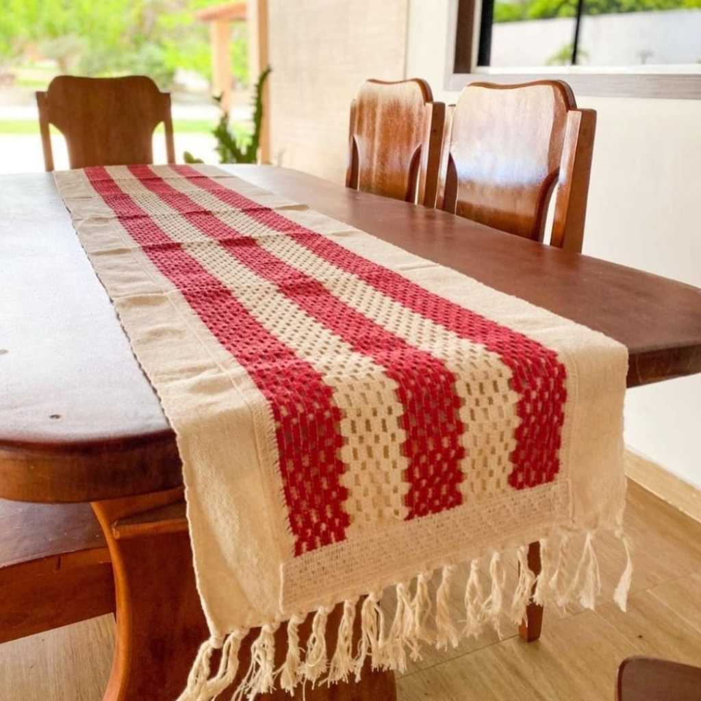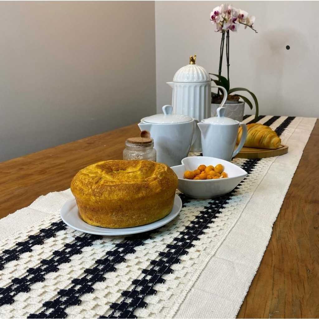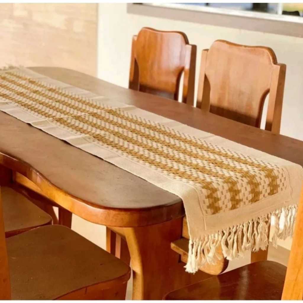 TRILHO CAMINHO DE MESA COM DETALHES EM CROCHÊ 40X200 COM FRANJAS 100% ALGODÃO