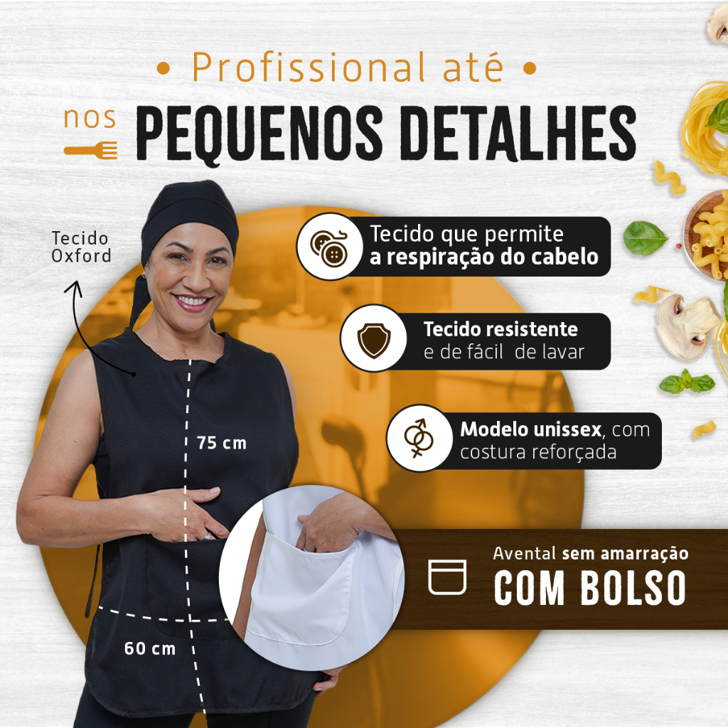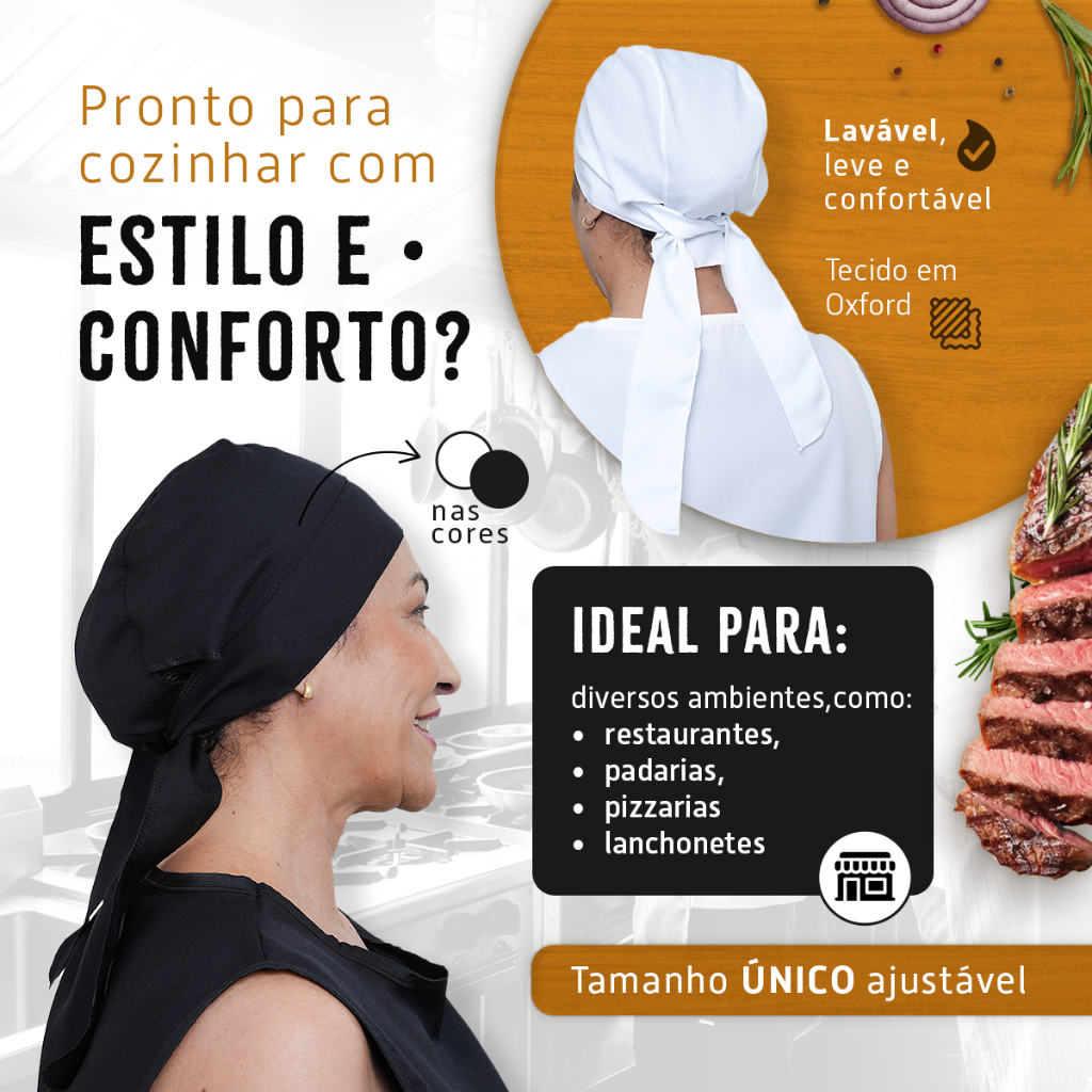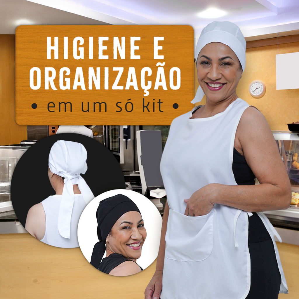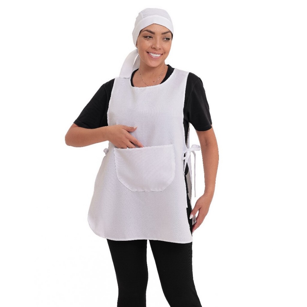 Kit Com Bata Avental Jaleco e Touca Bandana Uniforme Doméstica Cozinha Restaurante