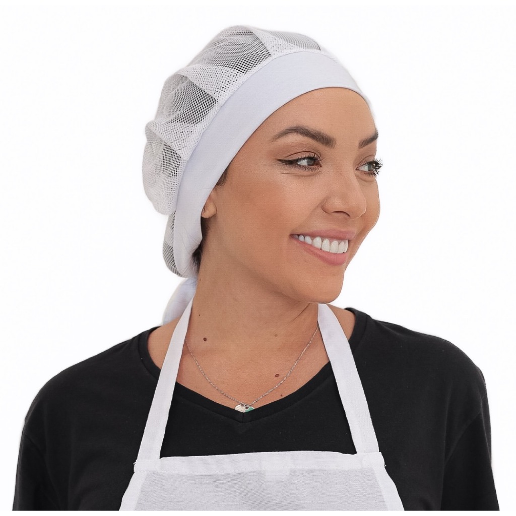 Touca Para Cozinheira Tela e Malha Lavável Levinha Fresquinha Lanchonete Restaurante Padaria