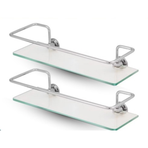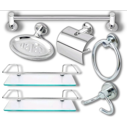 Kit Acessórios Para Banheiro Aço Inox 5 Peças + 2 Porta Shampoo Vidro Reto