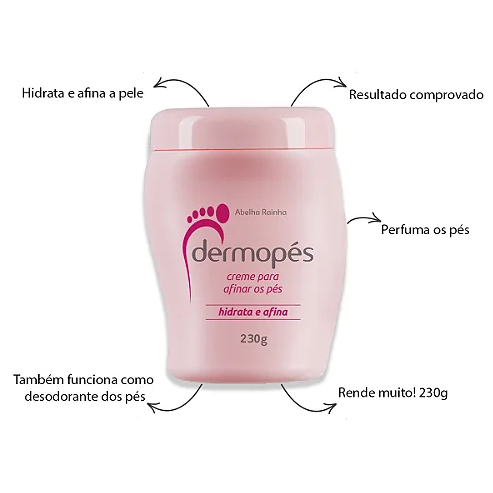 Dermopes Creme Para Os Pés Hidrata Afina Rosa E Restaura Azul 230 gramas Abelha Rainha Lixador