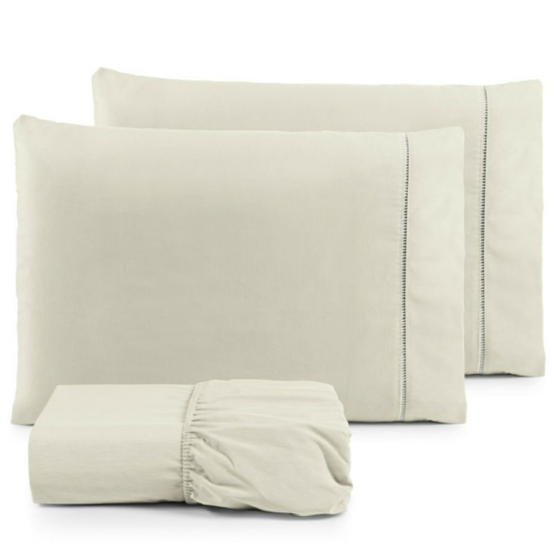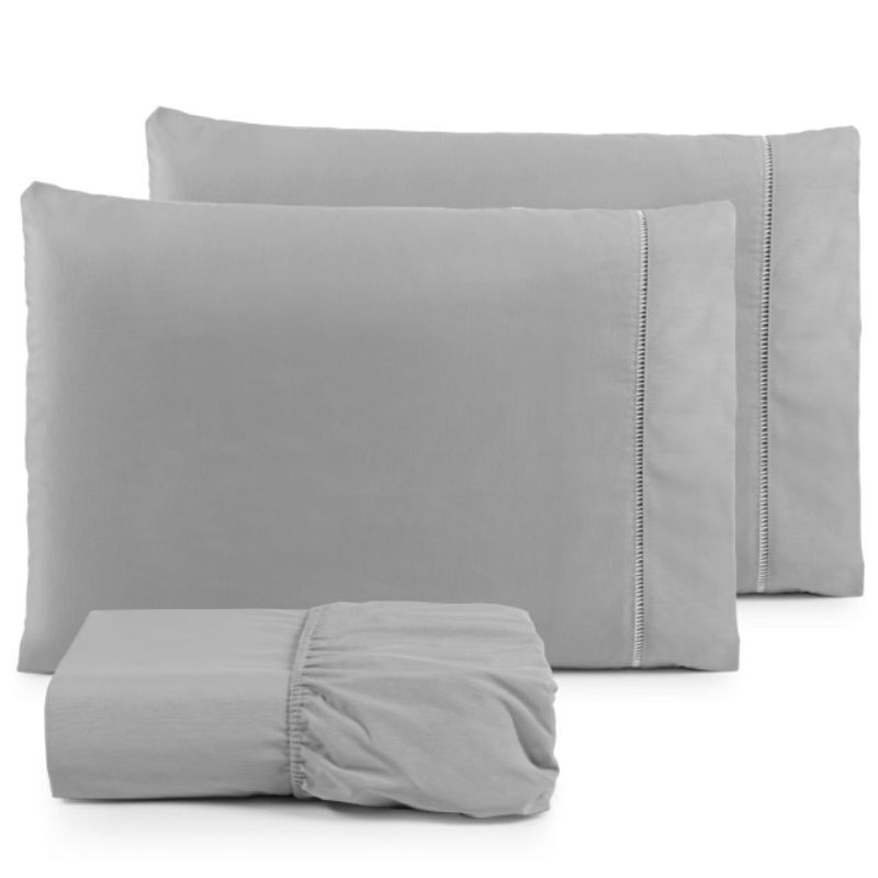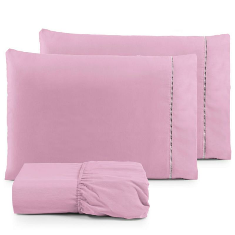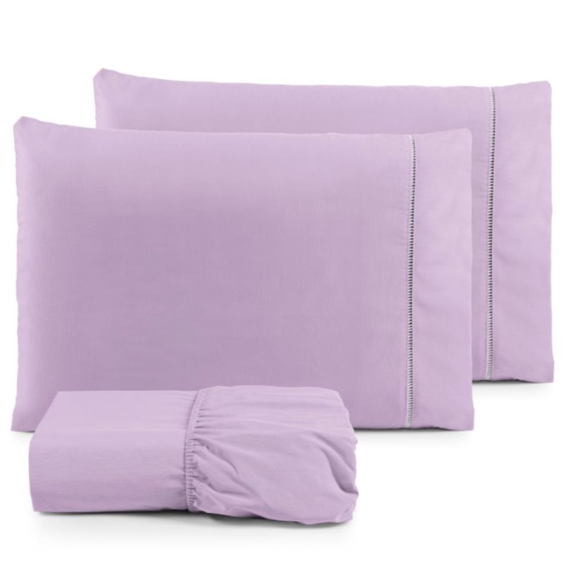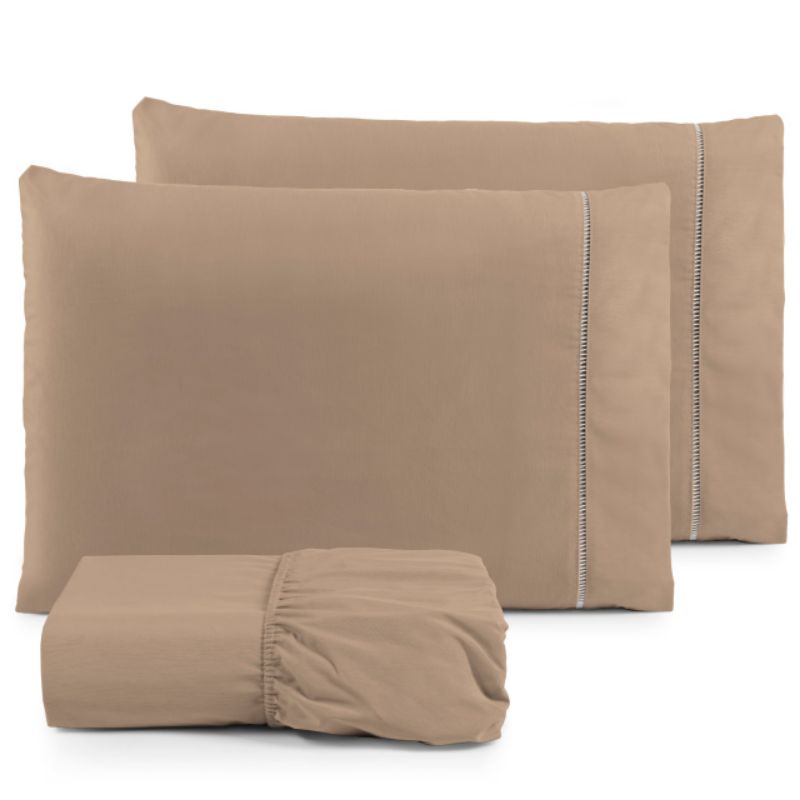 Lençol Casal 3 peças 200 fios 100% algodão com fronha em ponto palito