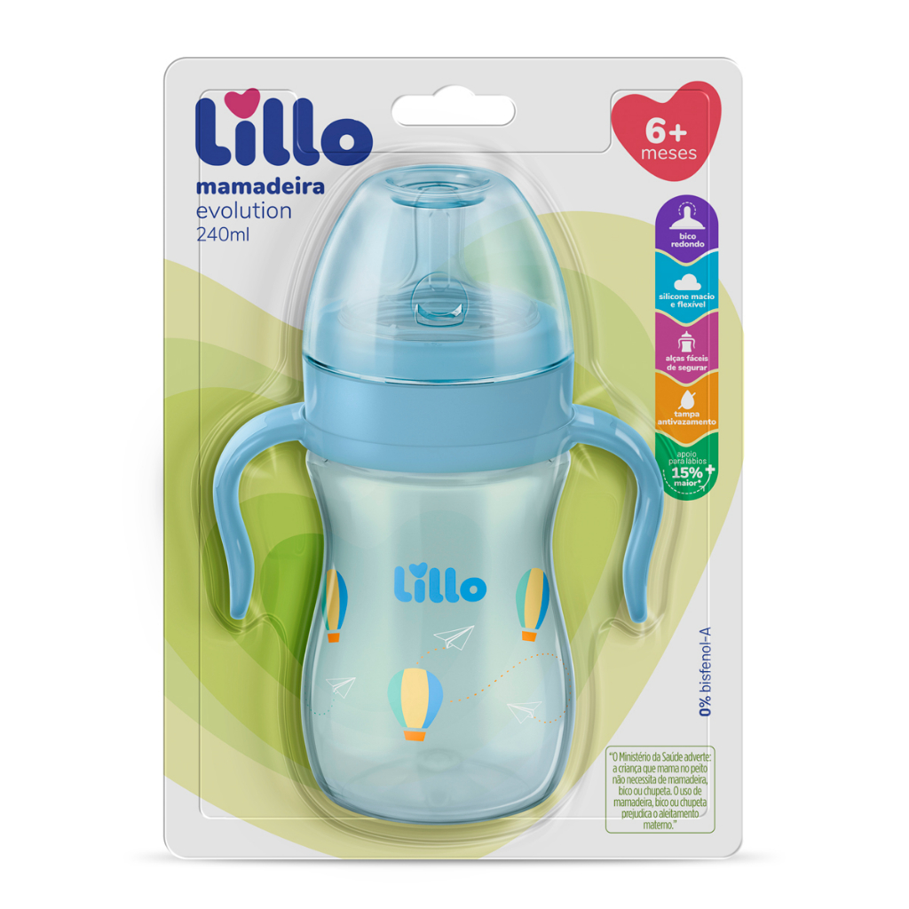 Mamadeira com Alça Super Evolution 240ml Azul - Lillo
