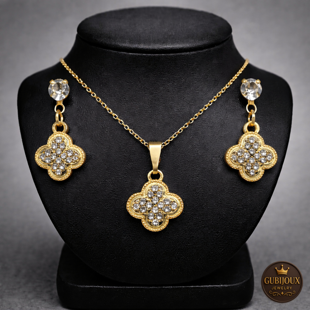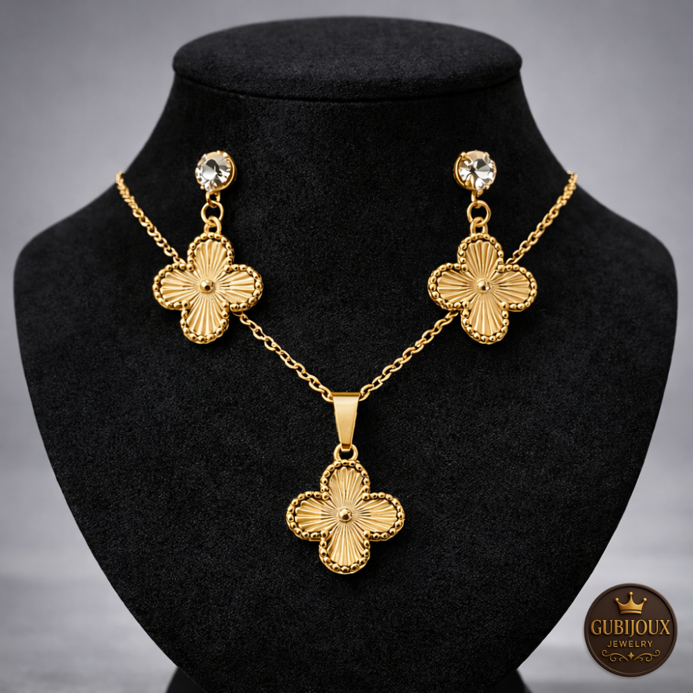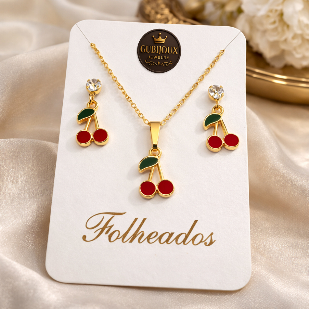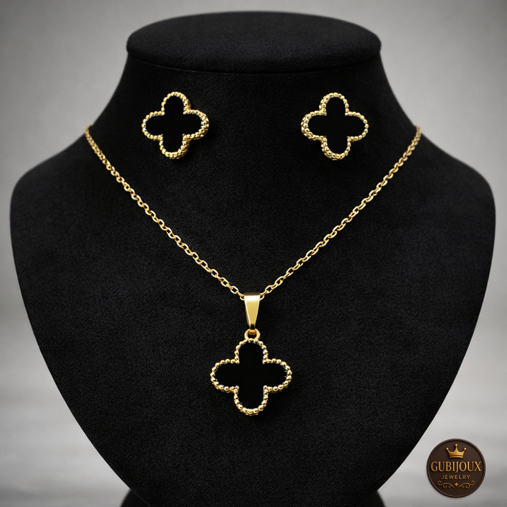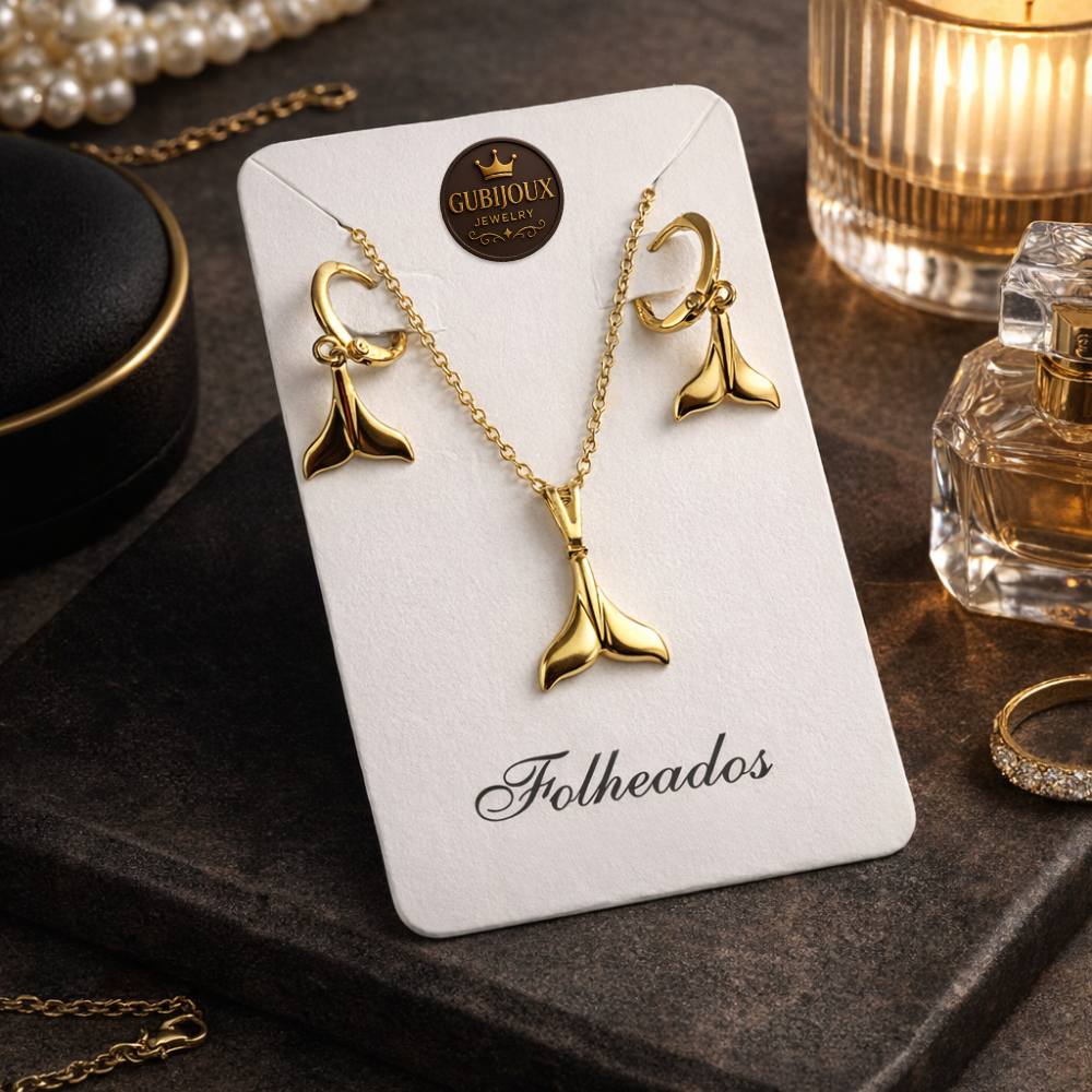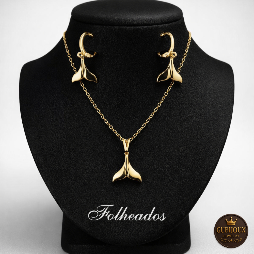 Conjunto Colar Brinco Trevo Folheado a Ouro18k