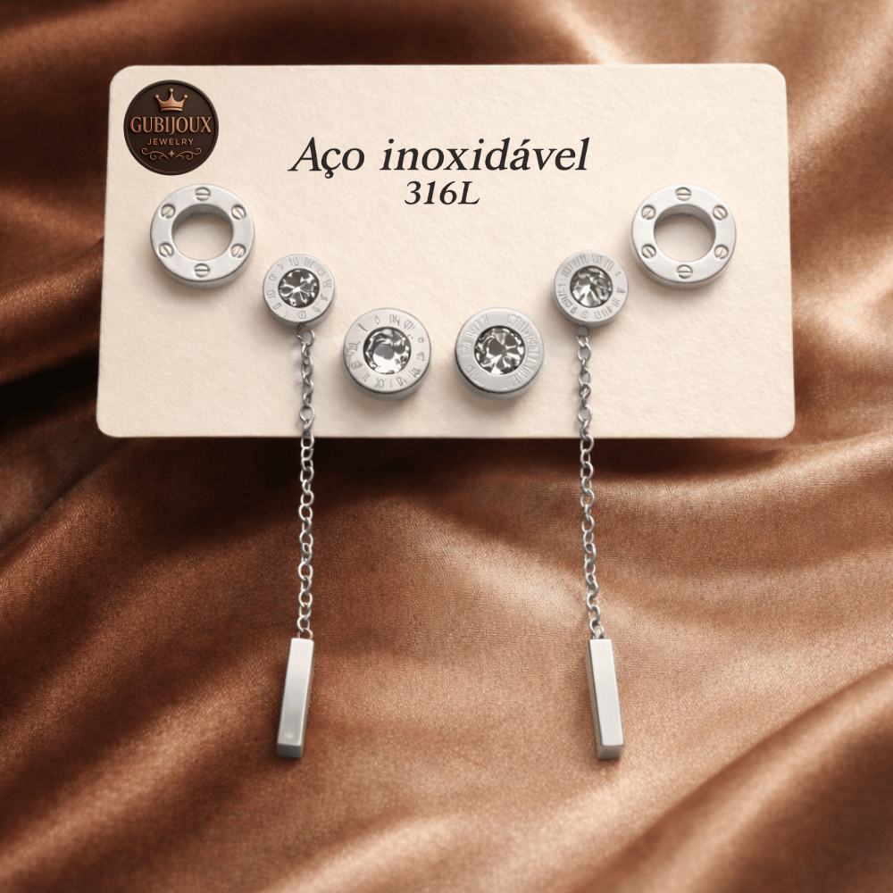 Brincos Femininos Aço Inox 316L Dourado ou Prata Antialérgico Resistente à Água com Zircônia