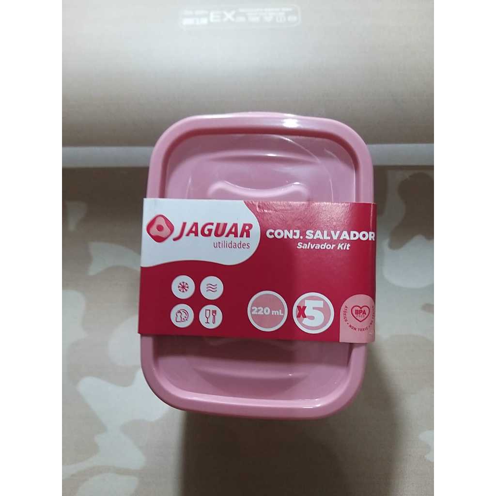 CONJUNTO KIT 5 PEÇAS VASILHA POTES PLASTICO QUADRADO JAGUAR 220ML