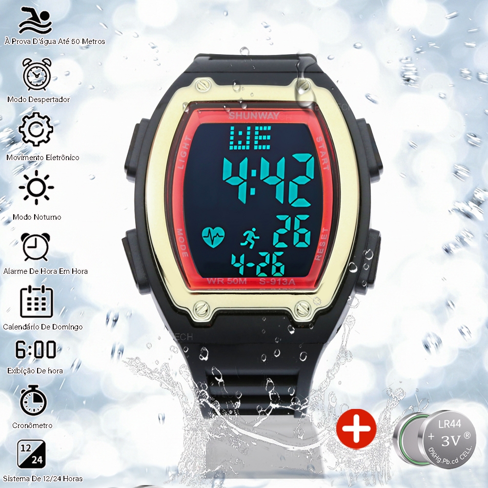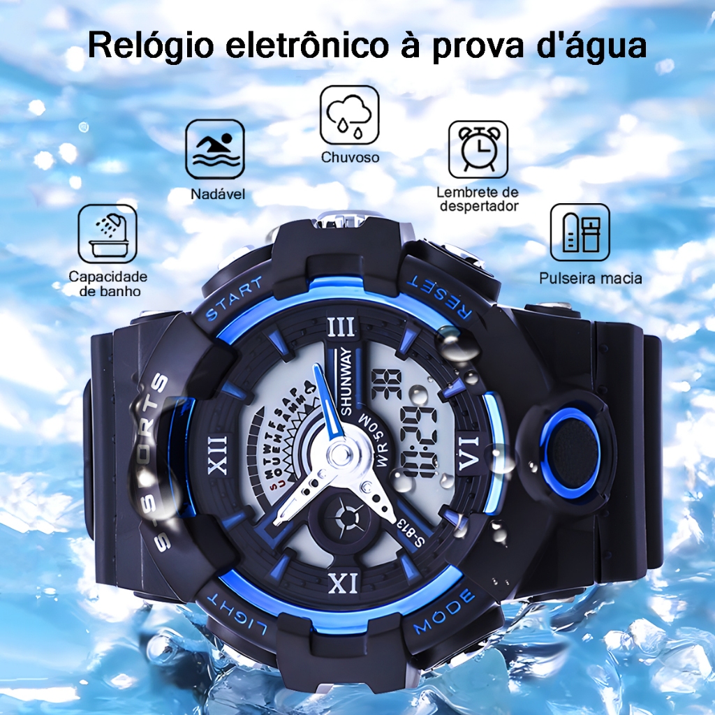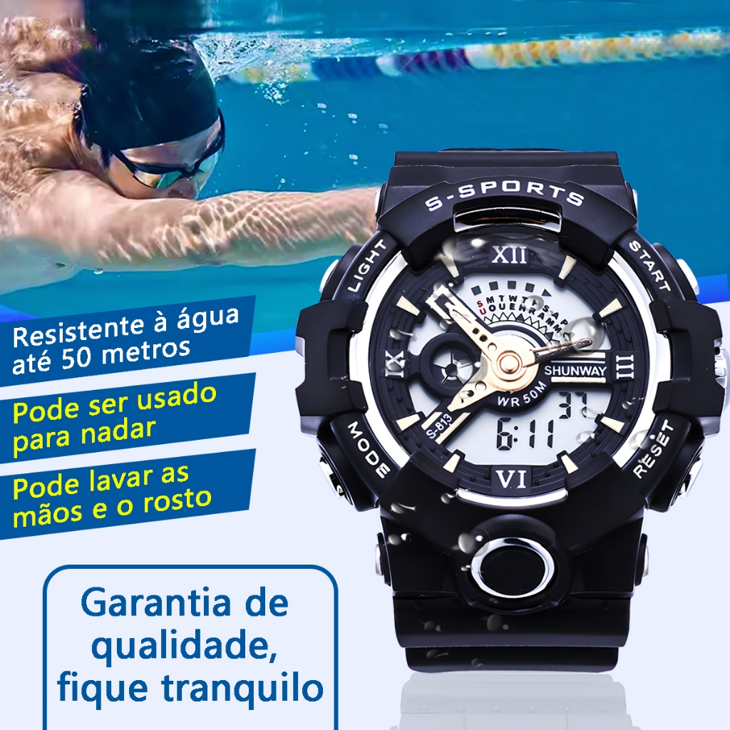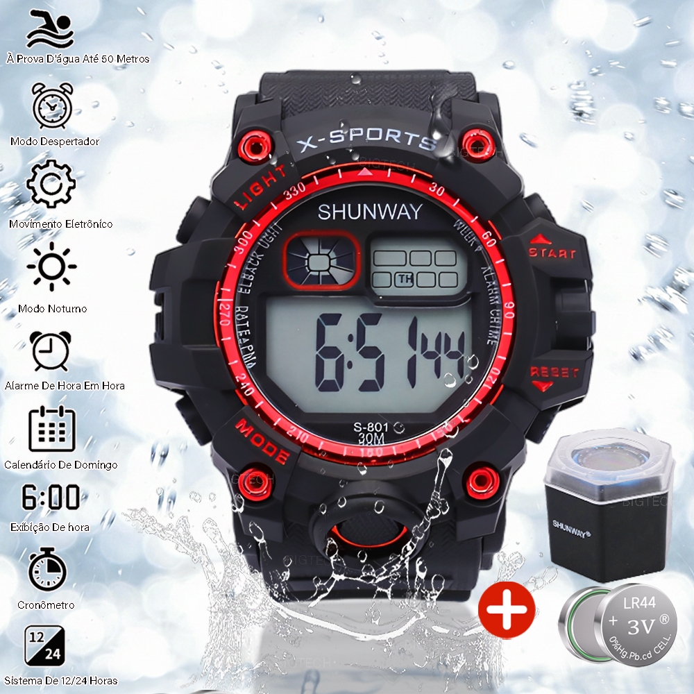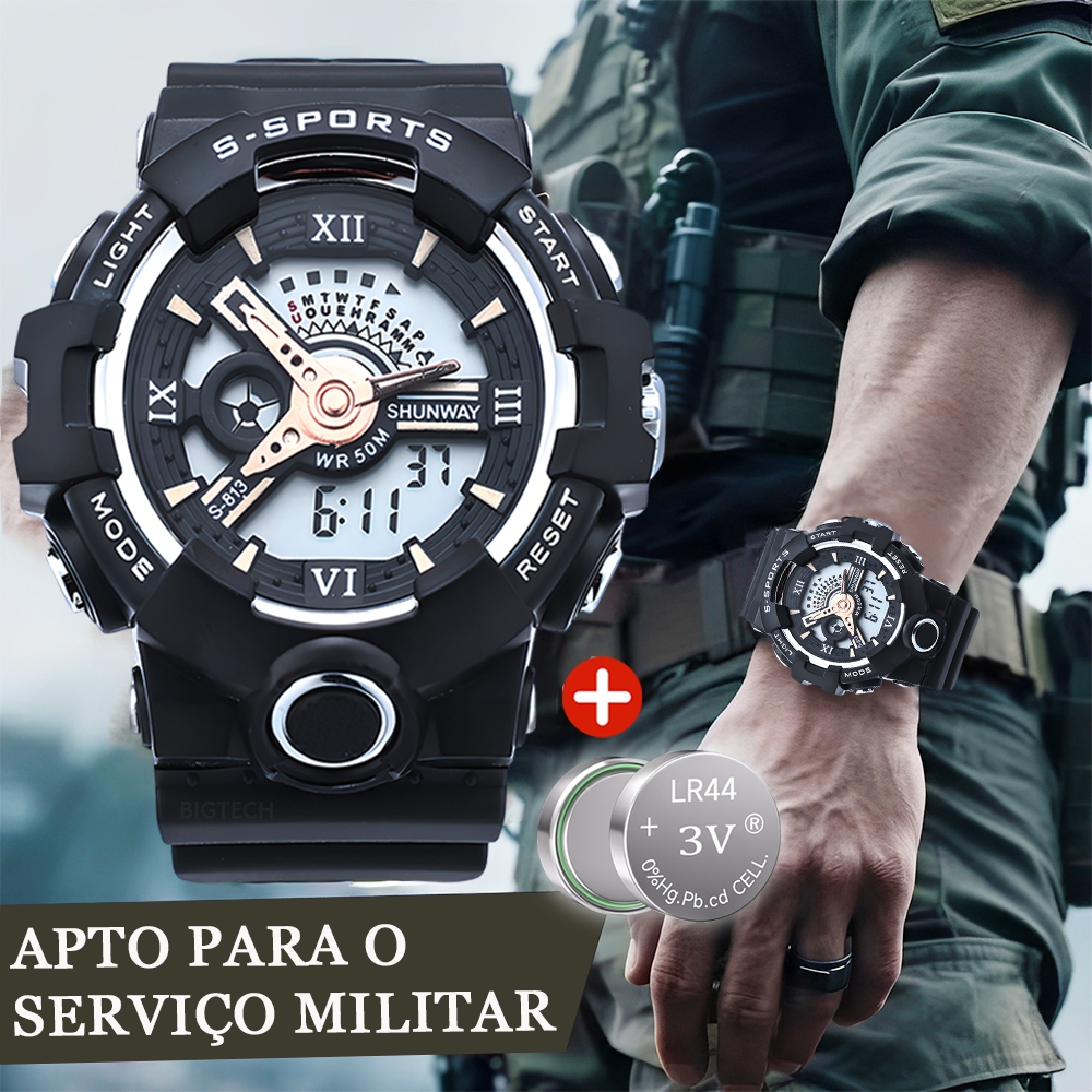 Relógio Digital Tático Masculino Cronógrafo Esportivo LED À Prova D'água Pulseira De Silicone