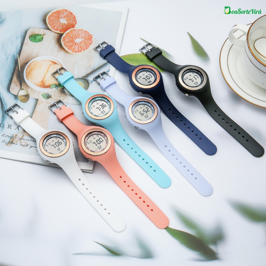 Relógio De Casal Aprova D'água Redondo LED Relógio Feminino Digital Original Eletrônico Unissex