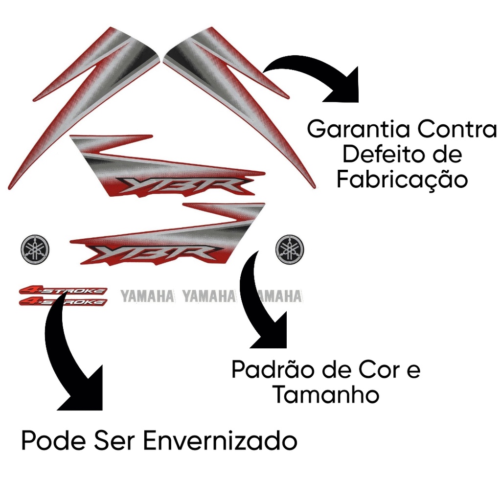 Adesivos Faixas Ybr 125 Vermelho Preta Prata Verde 2006 Vermelha 06