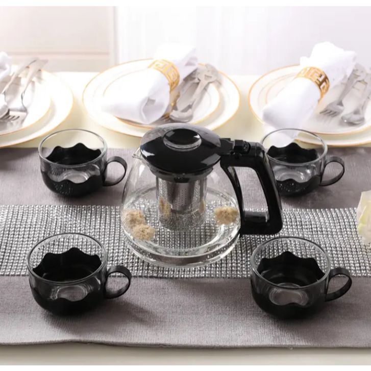 Conjunto De Jarra 1,1L Com Infusor E Xícaras 150mL Para Chá 5 Peças Vidro e Plastico