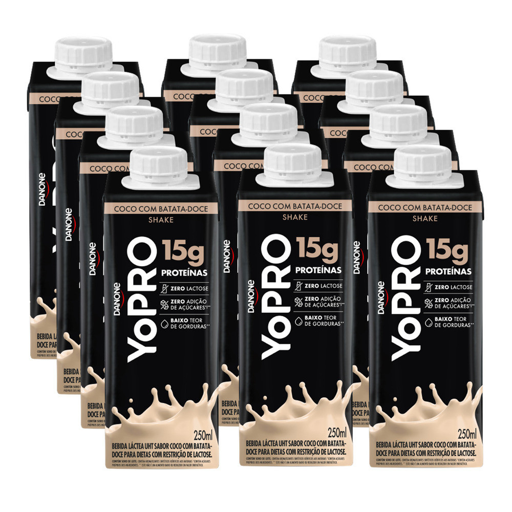 Pack 12 unidades YoPRO Bebida Láctea UHT Coco com batata Doce 15g de proteínas 250ml