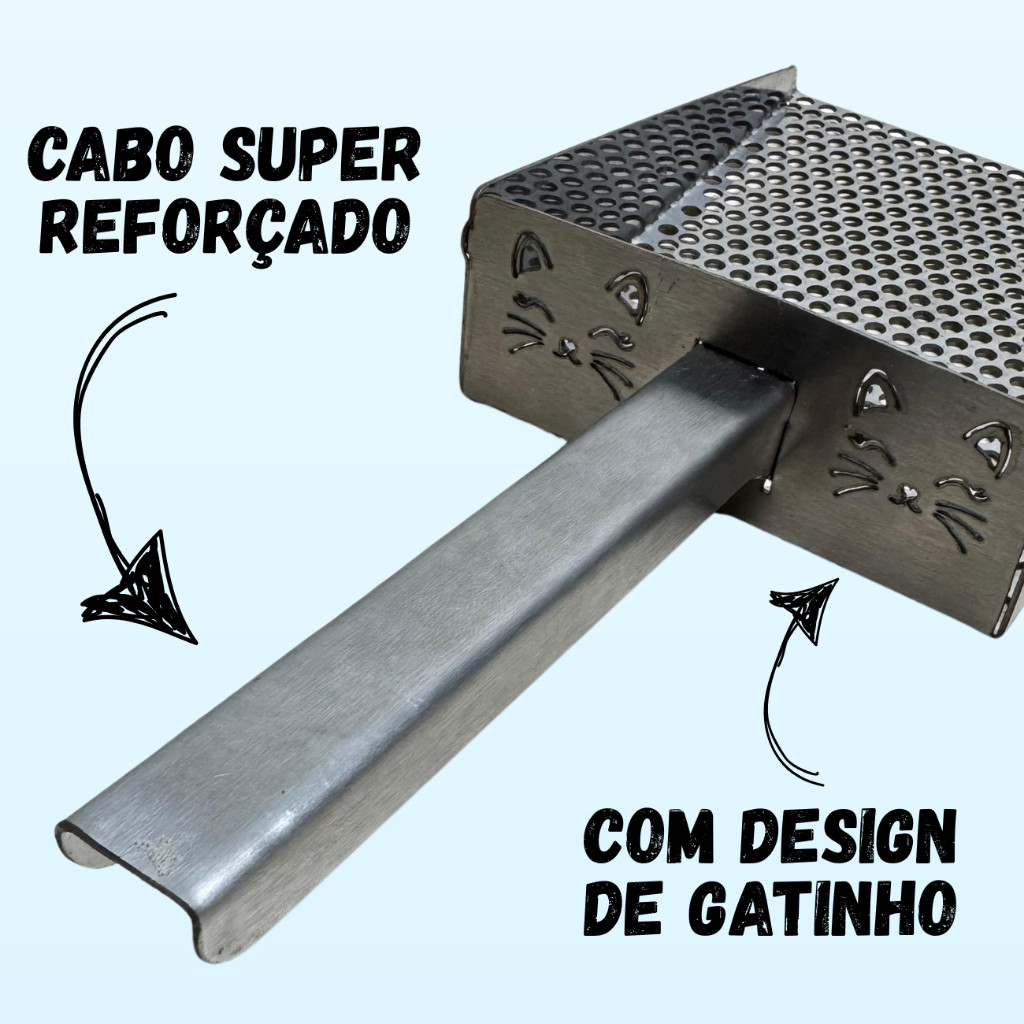 Pá Higiênica Peneira Coletora de Areia para Gatos em Aço Inox