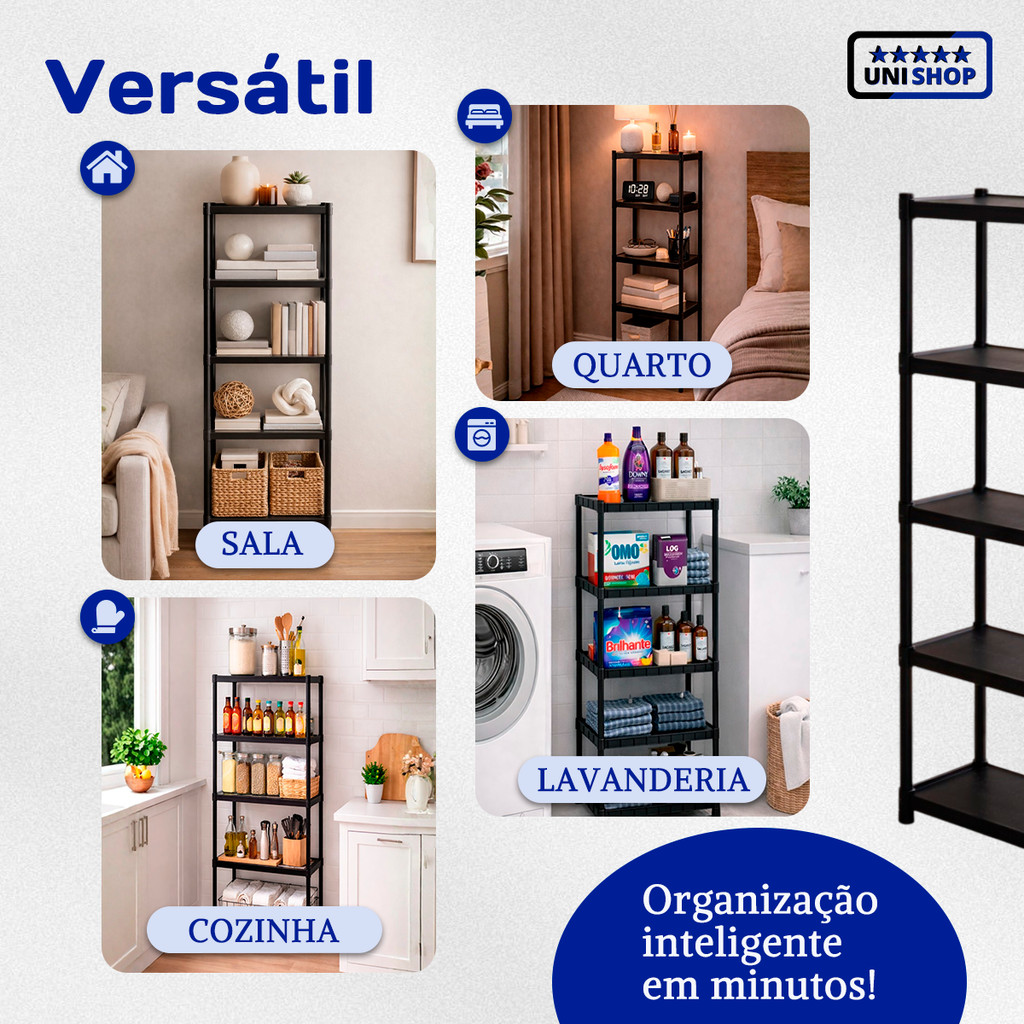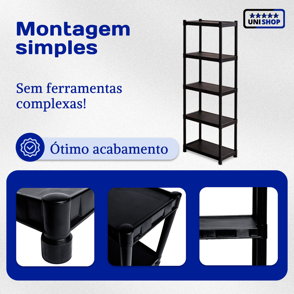Prateleira Organizadora Modular Multiuso em Plástico Reforçado com 5 Níveis e Pés de Apoio