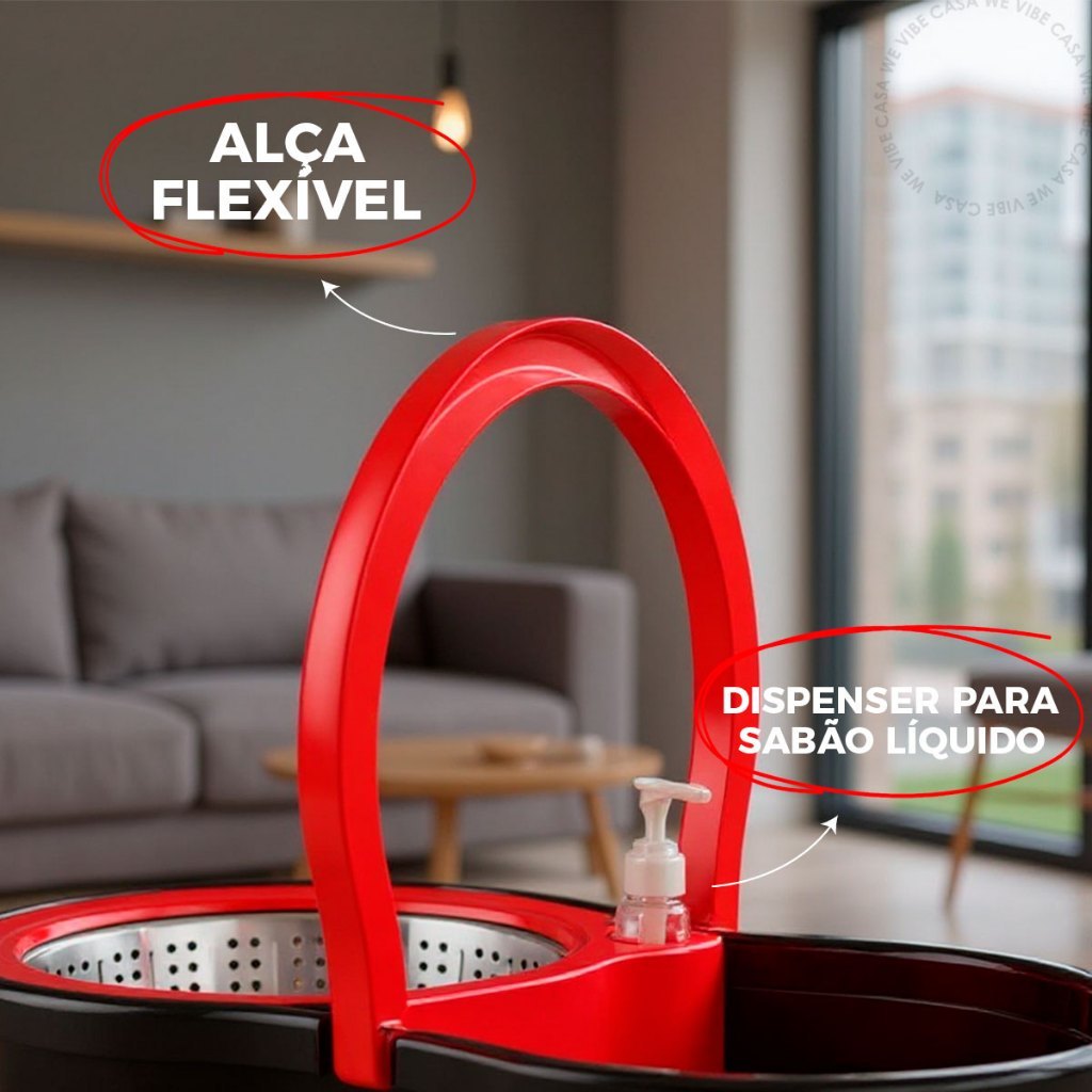 Mop Giratório Esfregão Cesto Inox Rodinhas Balde Centrifuga Cabo 140CM
