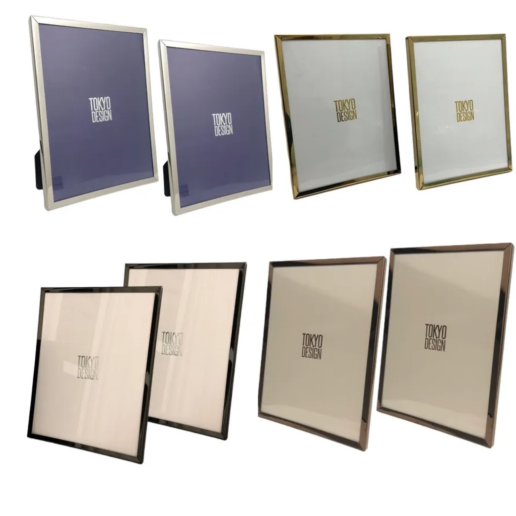Kit Dois Porta Retratos Aço Inox E Vidro 15x20