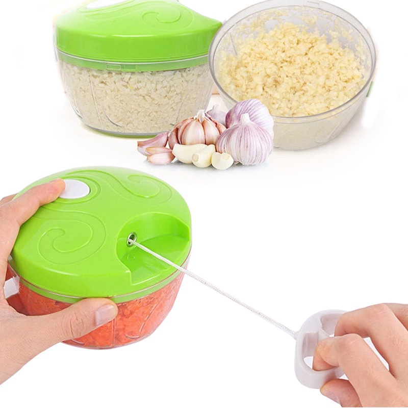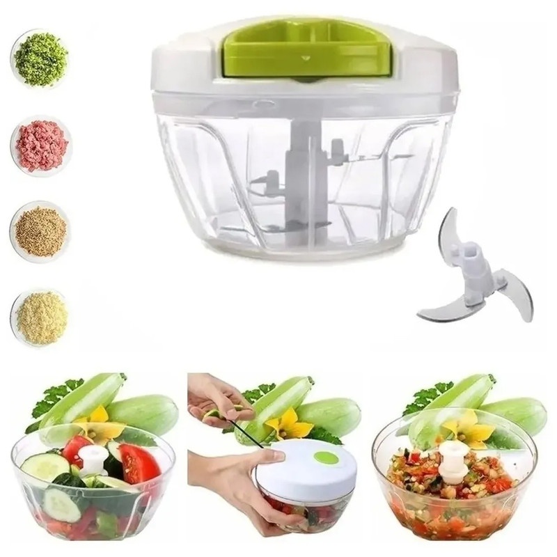 KIT 2 Mini Processador de Alimentos Manual com 3 Lâminas em Aço Inox - Triturador | Cortador | Fatiador