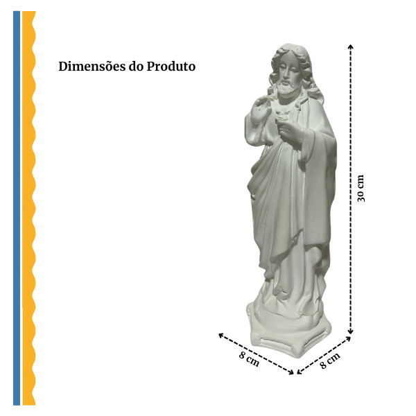 Sagrado Coração de Jesus 30cm em Gesso Cru