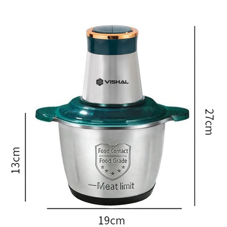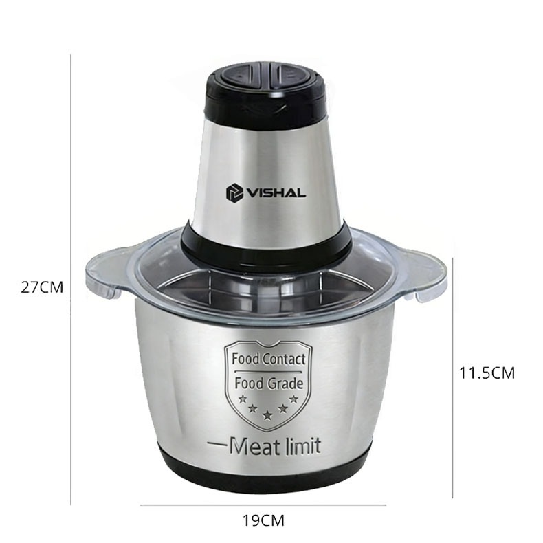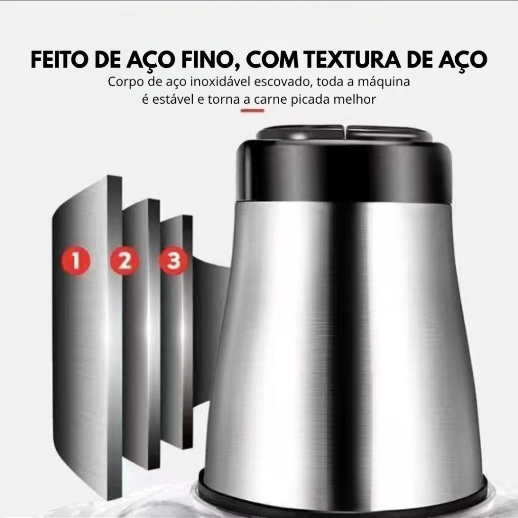 2 Litro Triturador de Alimentos Elétrico - Processador Carne Legumes 2 Velocidades Bivolt Inox Fácil Limpeza