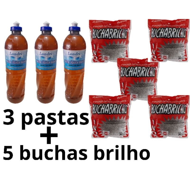 kit 5 bucha brilho + 3 pastas líquida brilho