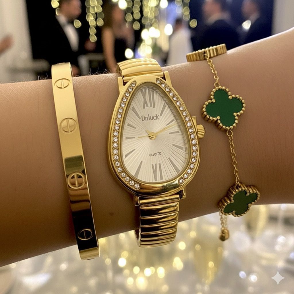 Kit Conjunto Relógio Feminino Dourado com Pulseira Pulseira Acessórios Femininos Relógio