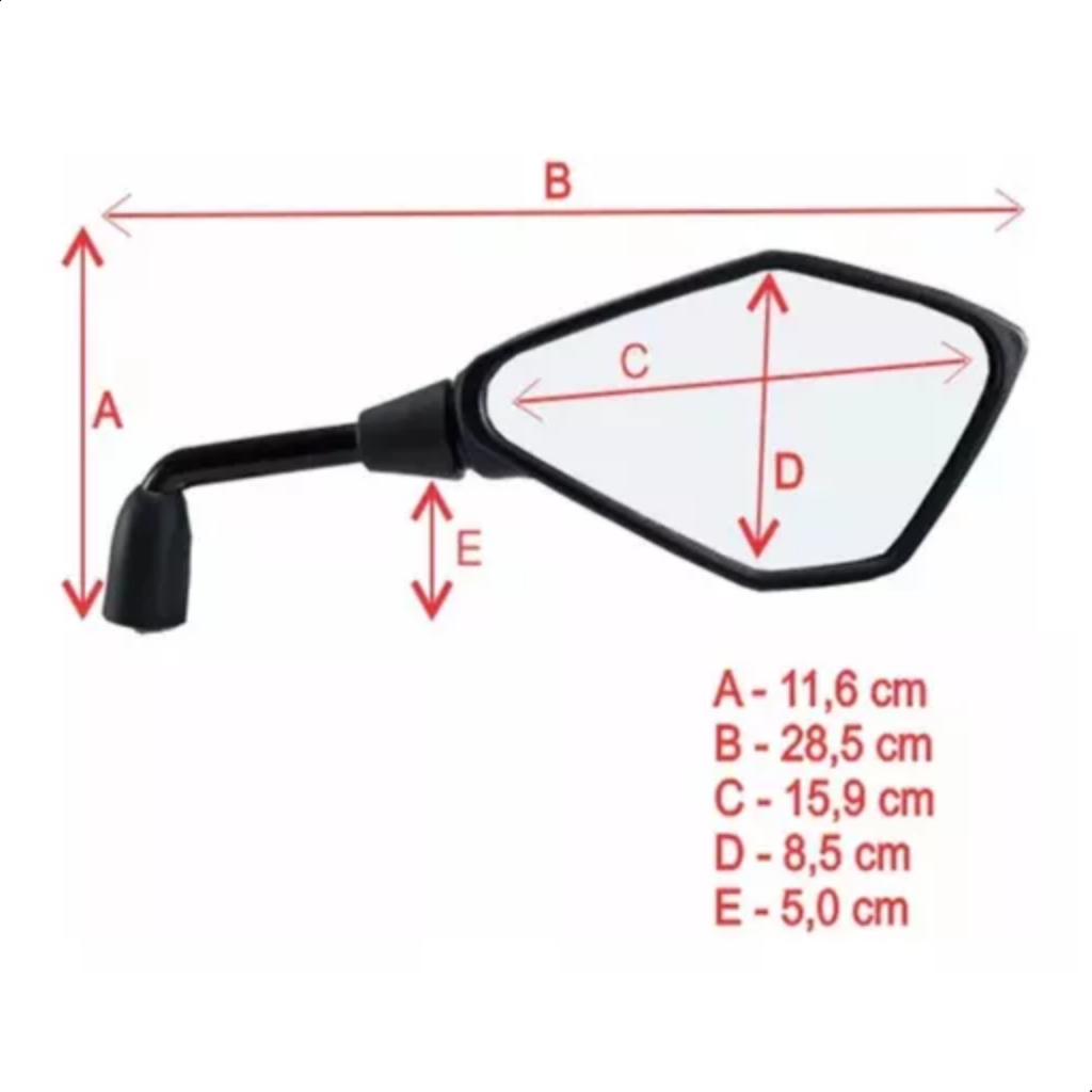 Retrovisor RVG Modelo Z400 Haste Longa 90° Lente Plana Para Yamaha