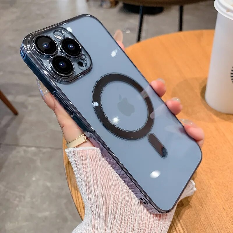 Capa Protetora De Lente Completa Macia Para iPhone 15 14 13 12 11 Pro Max Plus Magsafe Magnetic Wireless Charging Clear