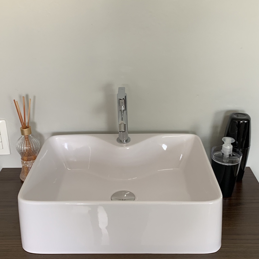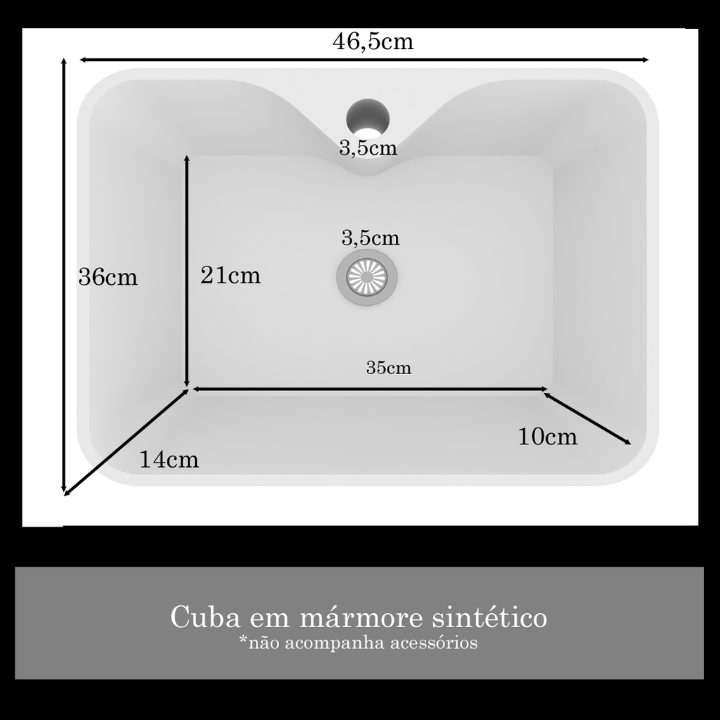 Cuba pia de apoio para banheiro 46,5X36X13 Prisma branco marmorite