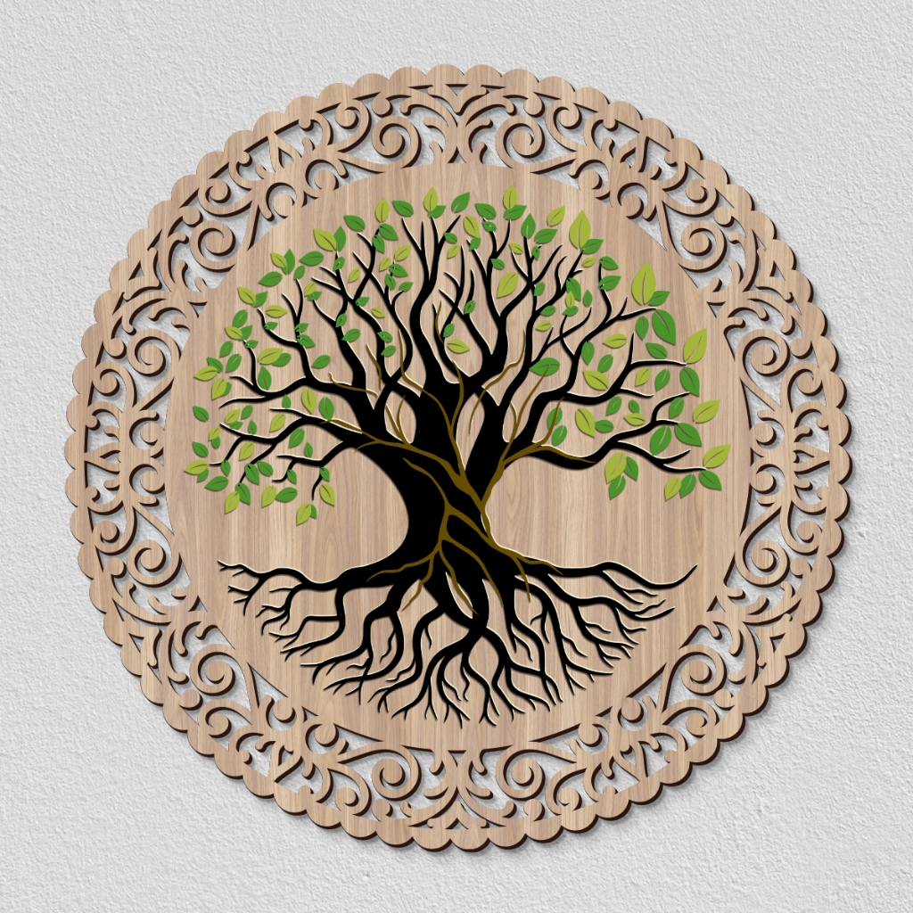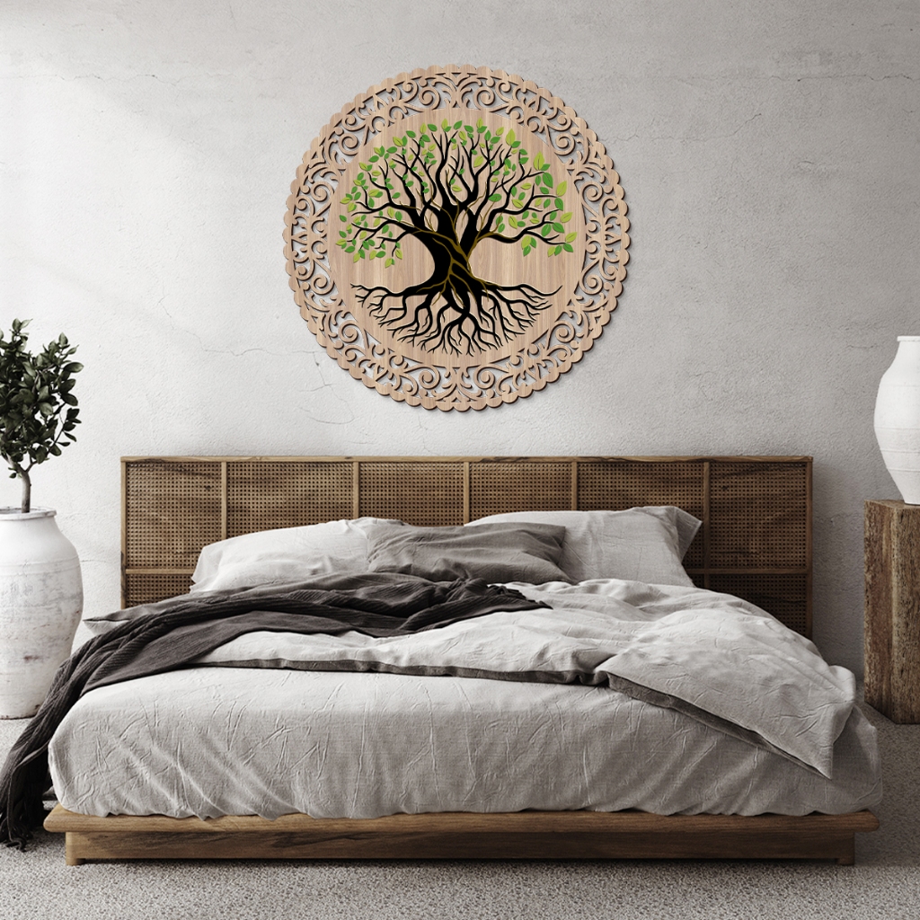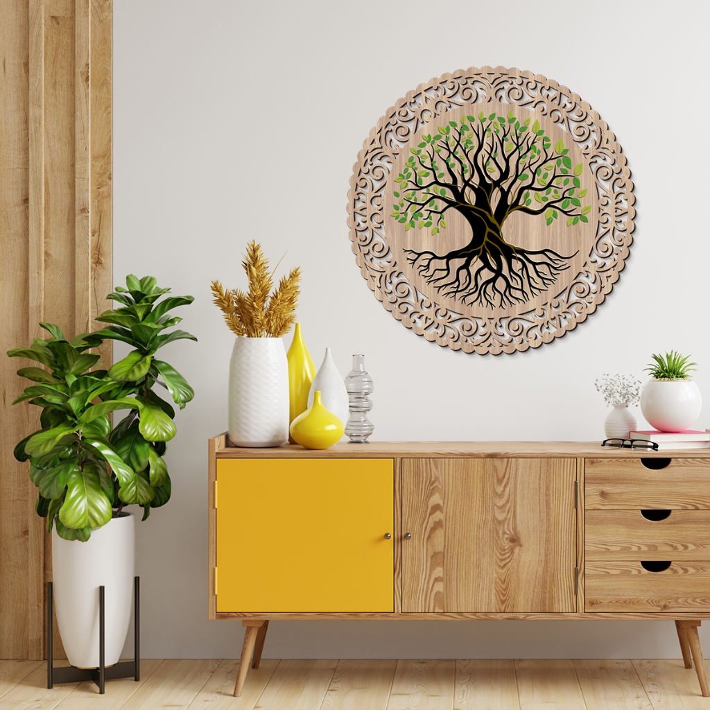 Mandala Em Madeira 3mm, quadro decorativo para parede, Meditação, Yoga, Zen, ÁRVORE DA VIDA 2