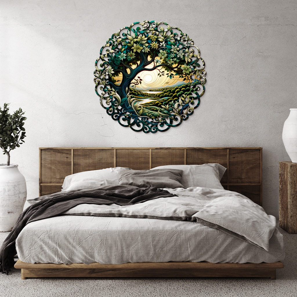 Mandala Em Madeira 3mm, quadro decorativo para parede, árvore da vida, ÁRVORE TONS DE VERDE