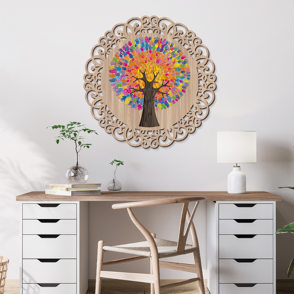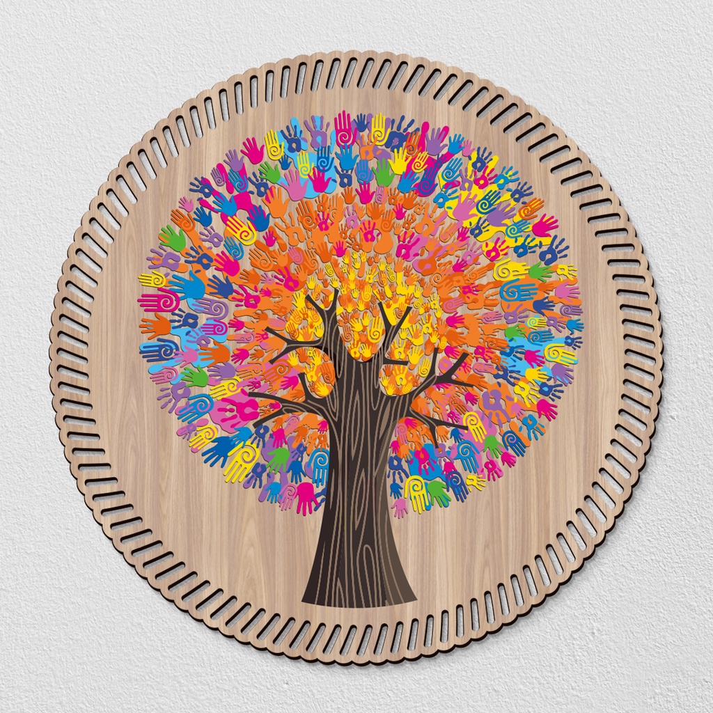 Mandala Em Madeira 3mm, quadro decorativo para parede, Arvore Da Vida, Meditação, Yoga, MANDALA MÃO