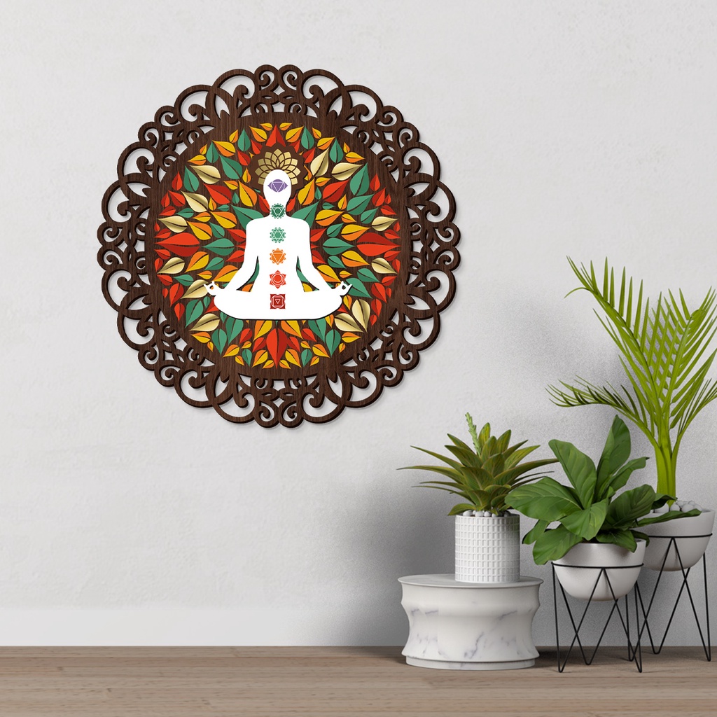 Mandala em madeira 3mm, quadro decorativo para parede, Zodíaco, Meditação, Zen, Yoga, MEDITAÇÃO 1