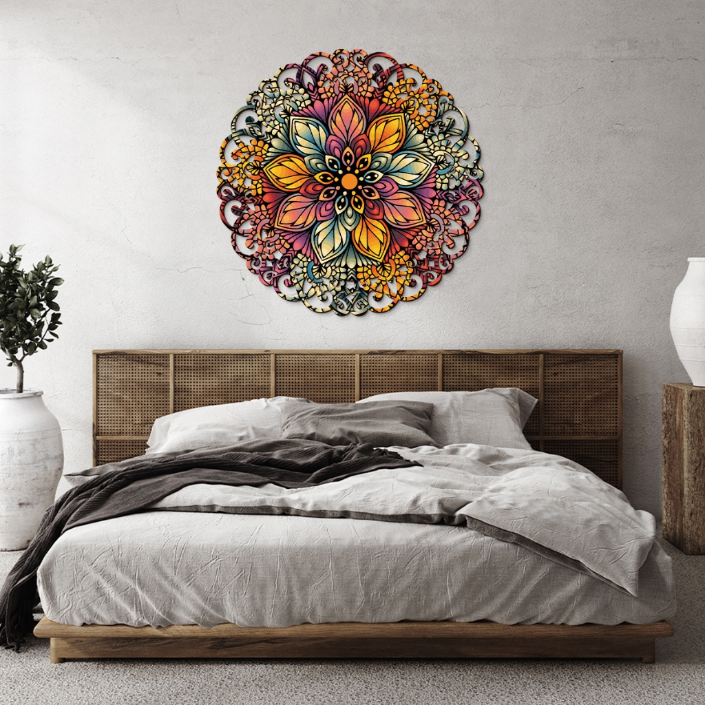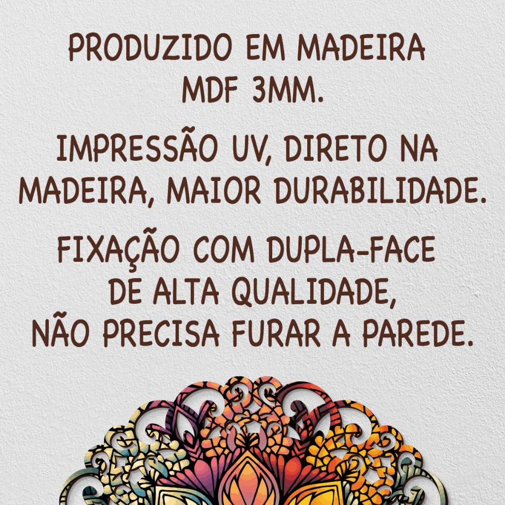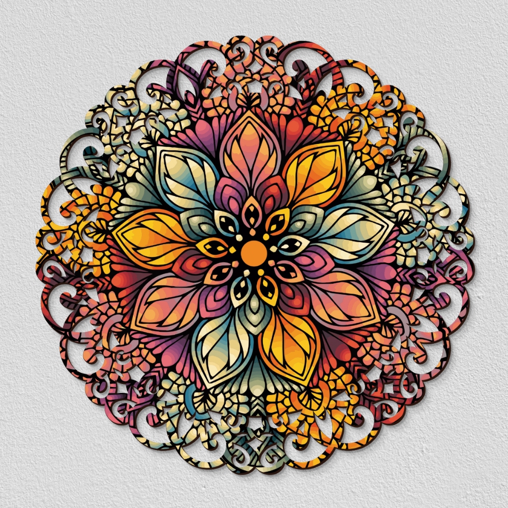 Mandala Em Madeira 3mm, quadro decorativo para parede, floral, cores vivas - MANDALA COR