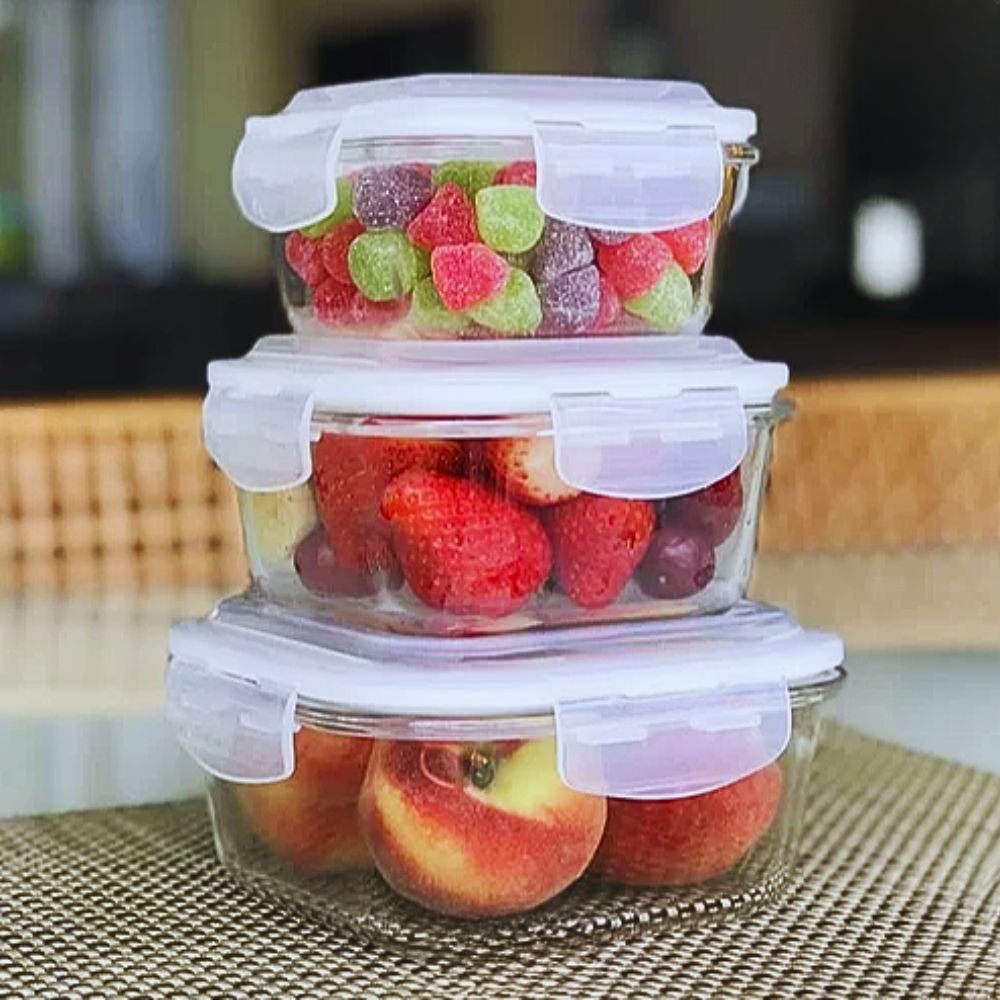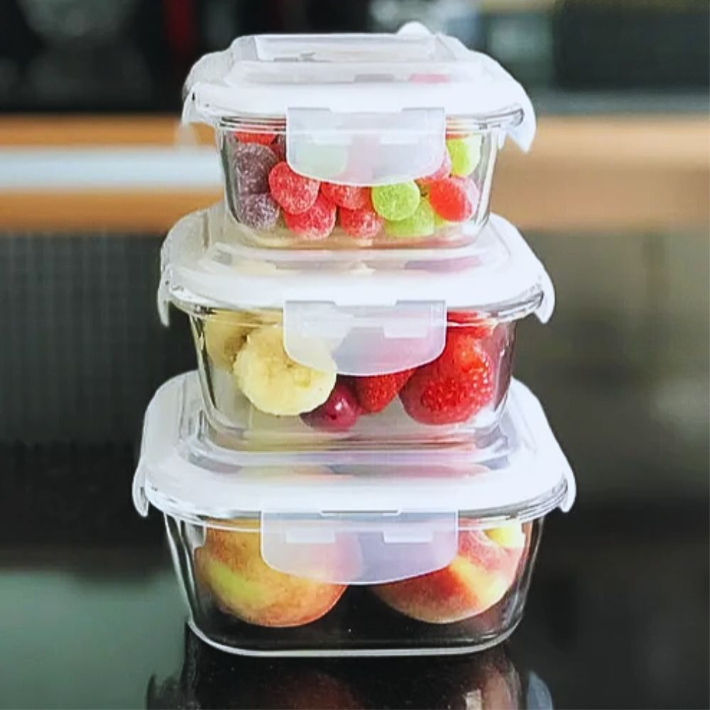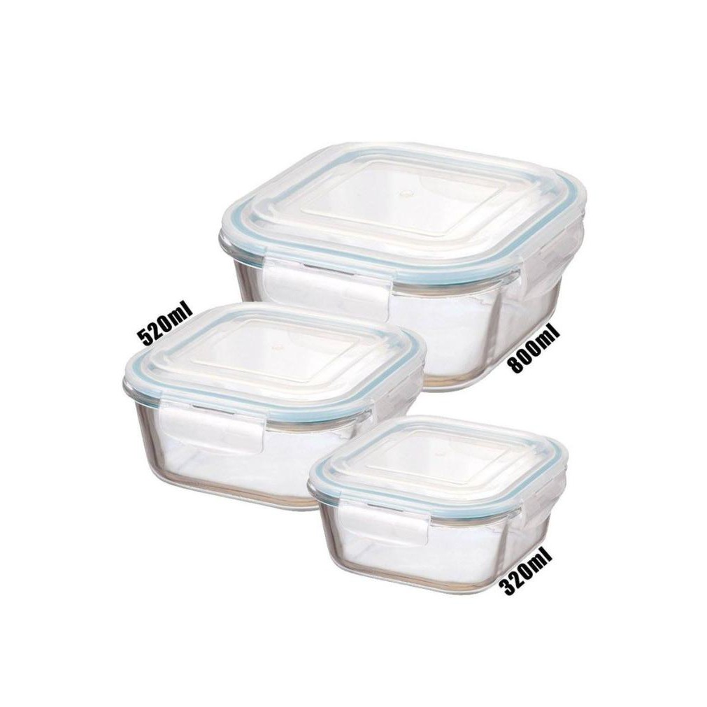 Kit Potes De Vidro Herméticos Quadrado 3 Tamanhos Peças 320ml, 520ml e 800ml