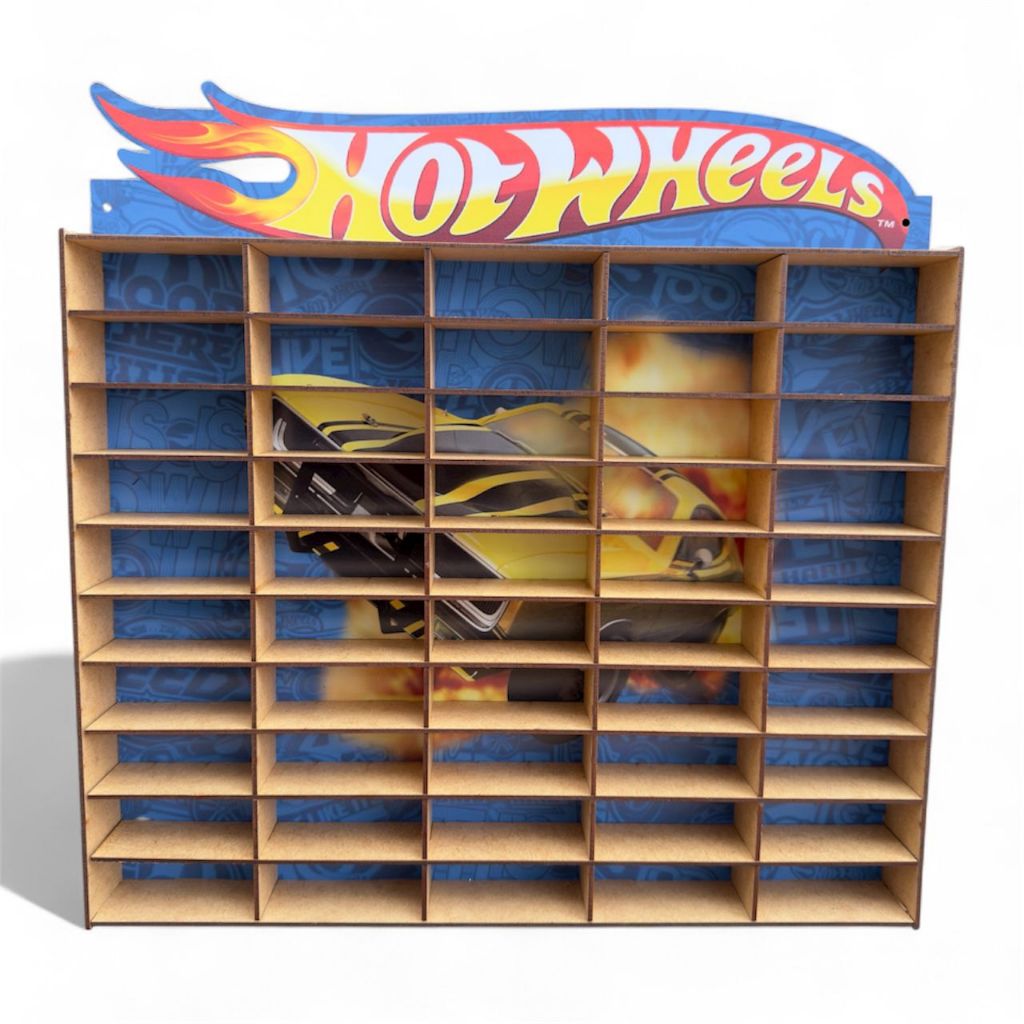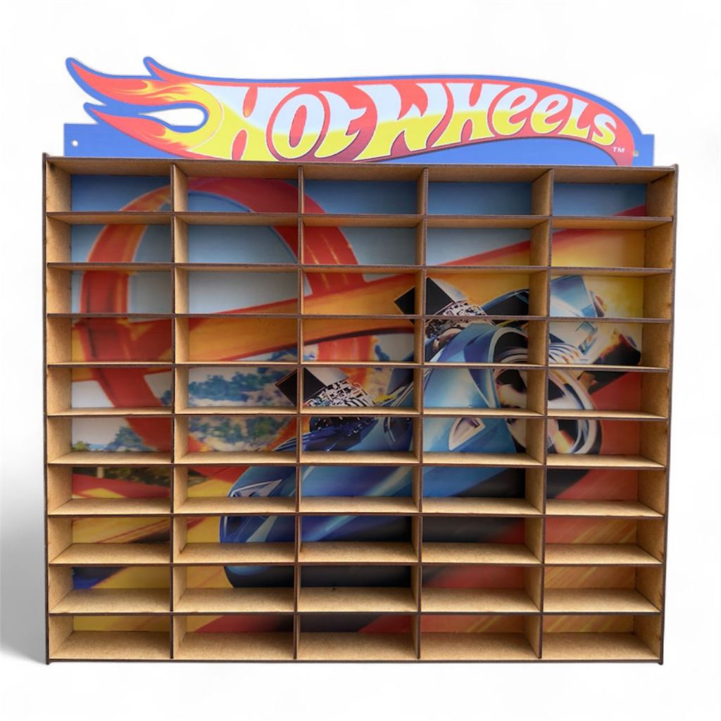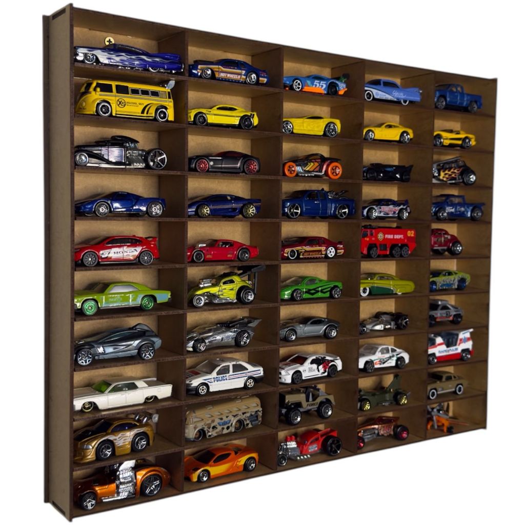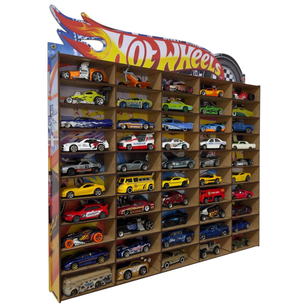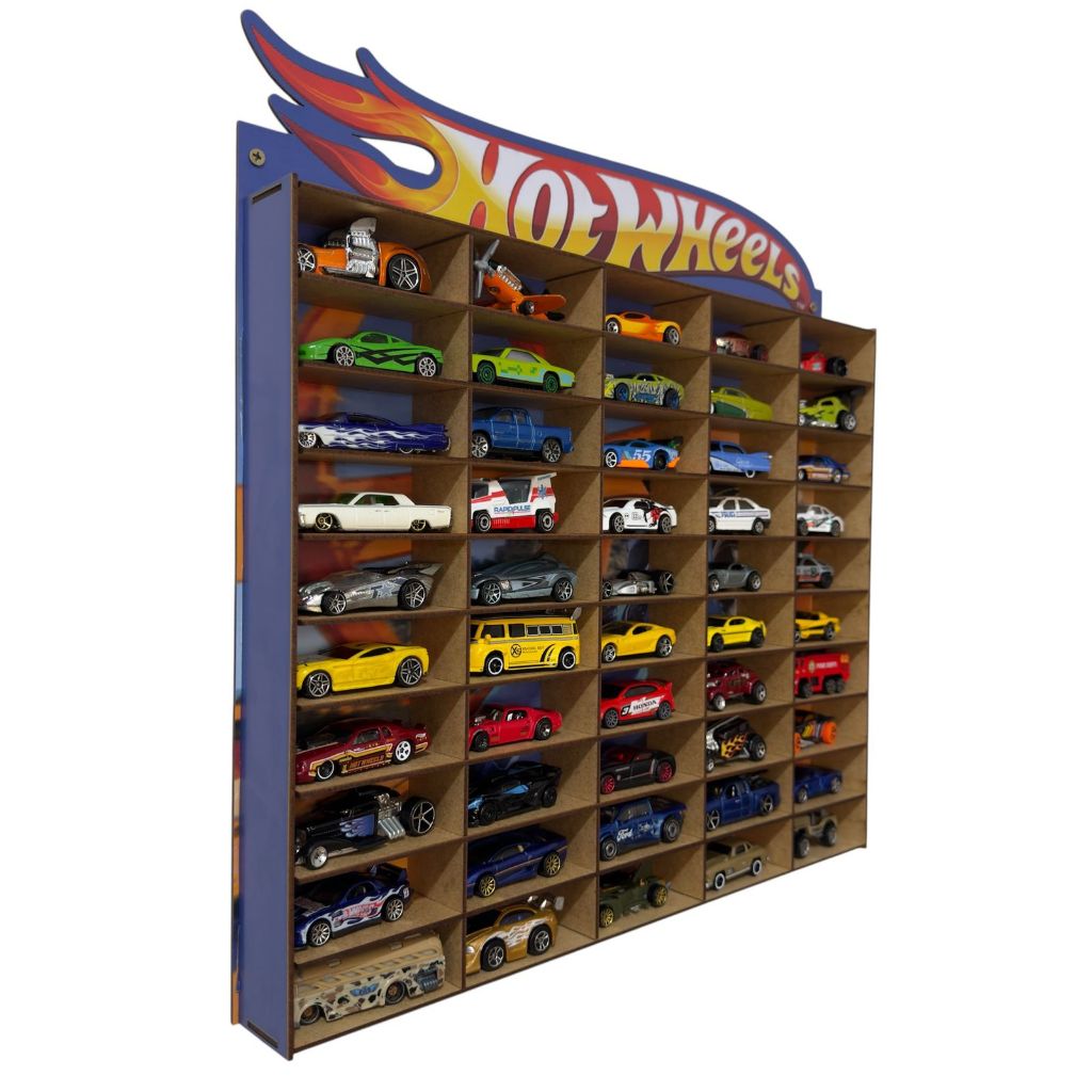 Expositor Porta Carrinhos Hotwheels Estante Prateleira Organizador Suporte de Carros Brinquedo Coleção 50 Nichos Mdf
