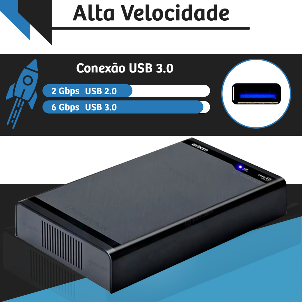 Case Hd Ssd Notebook Externo Usb 3.0 SATA de 2.5 e 3.5 Polegadas Para Pc Desktop Led 10Tb