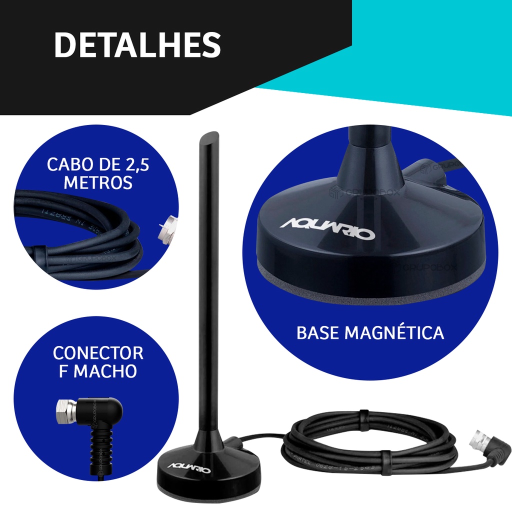 Antena Digital Interna 5 Em 1 Para Tv Base Magnética - DTV 100P