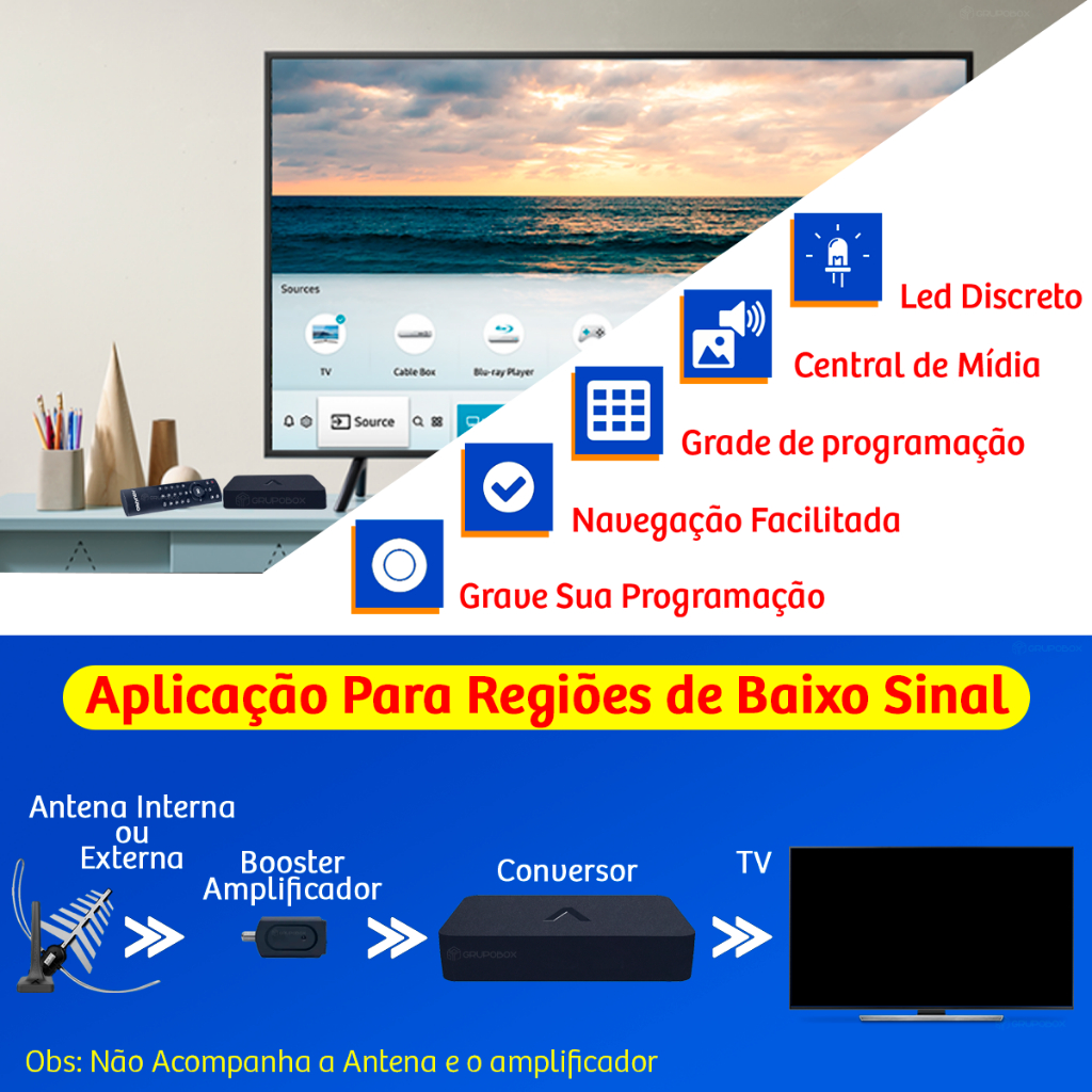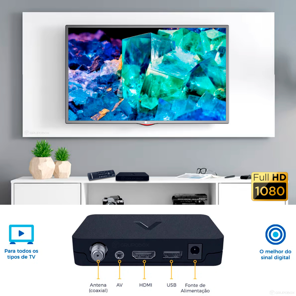 Conversor e Gravador Digital Aquário DTV-9000 HDMI Full HD Bivolt Compatível com TVs Antigas