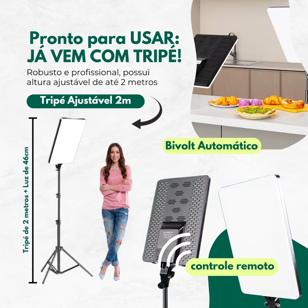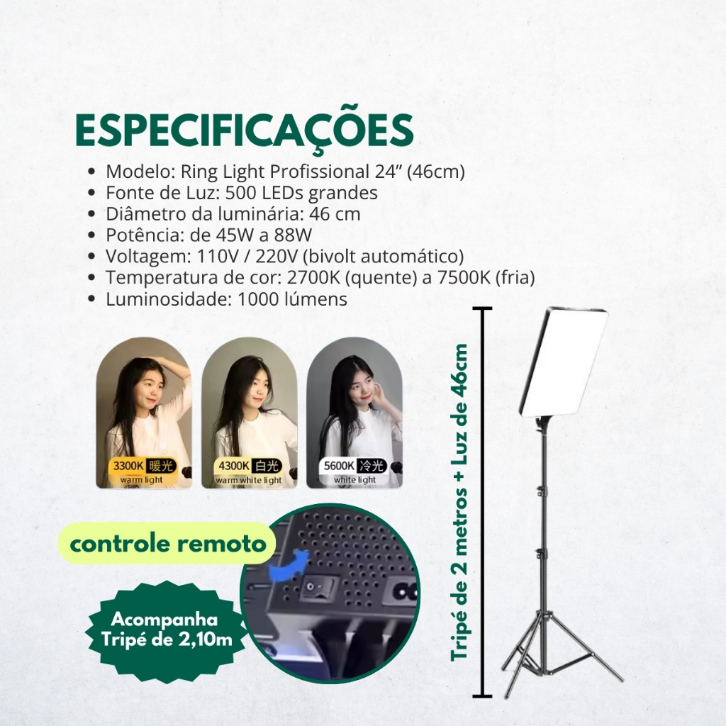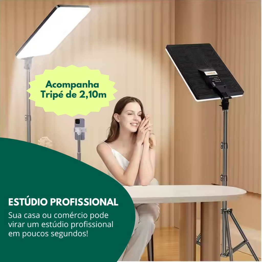 Ring light Quadrada Led Retangular Youtuber 16 Polegadas Profissional Foto Celular Tripé de 2.10 MTS