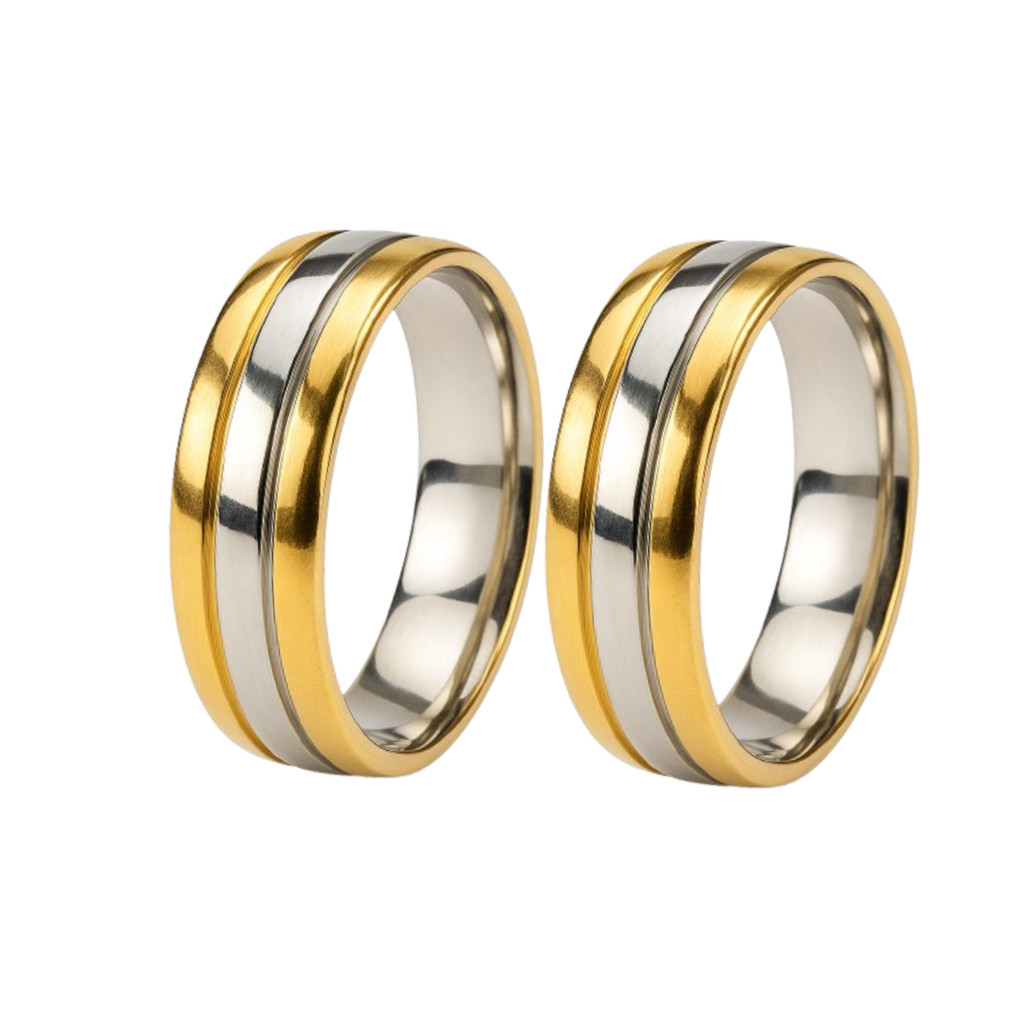 Par Alianças 6mm Banhada Ouro 18k Friso Prata Tradicional Casal Luxo Anel