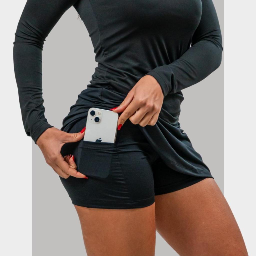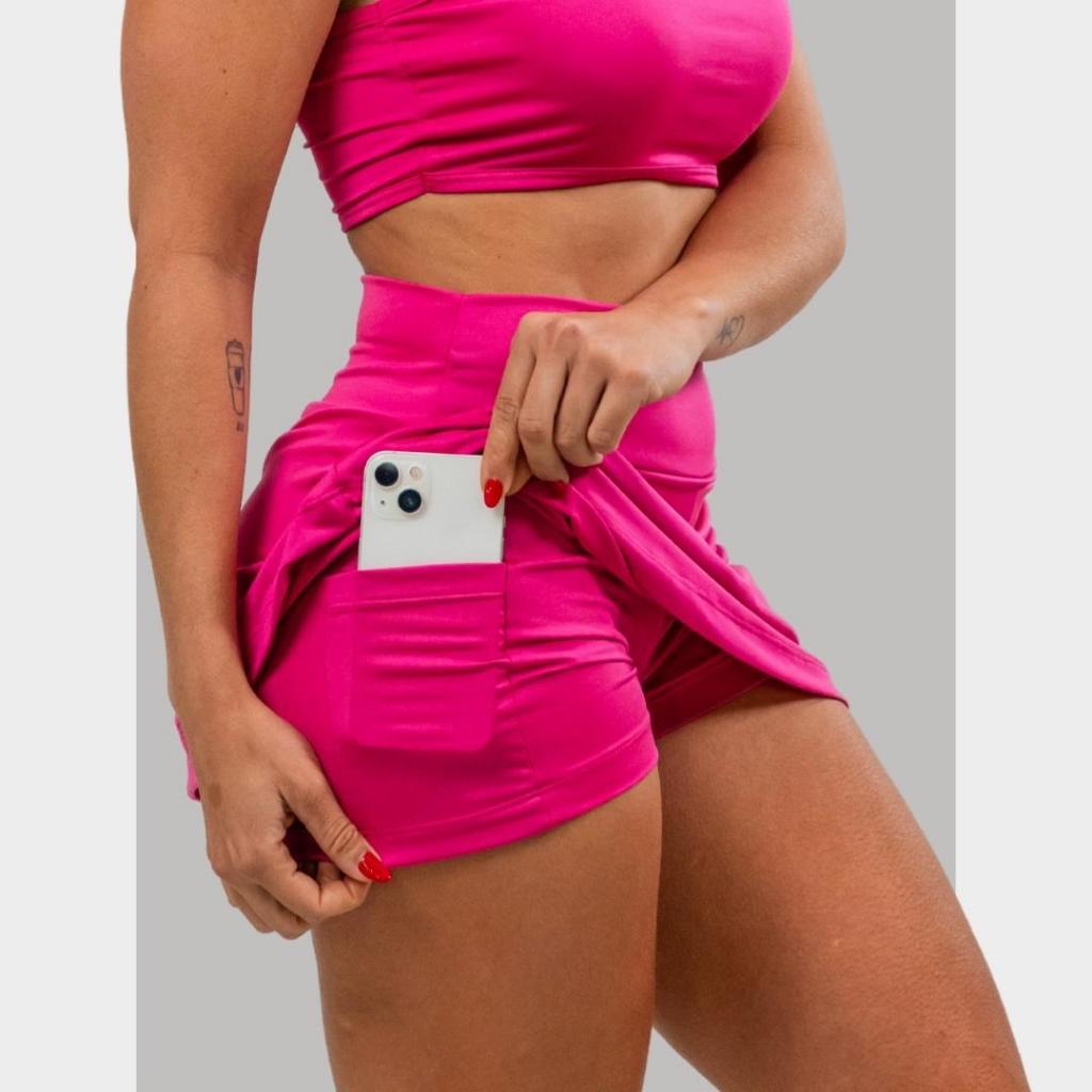 Short Saia Academia Tapa Bumbum Fitness com 2 Bolsos Ocultos pra Celular e Chave ProteçãoUV
