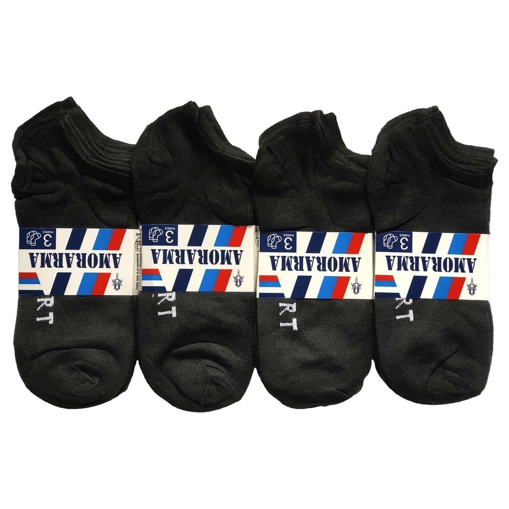 Kit 3 Pares Meia Soquete Cano Curto Meia Preta Algodão Masculino Feminino Unissex