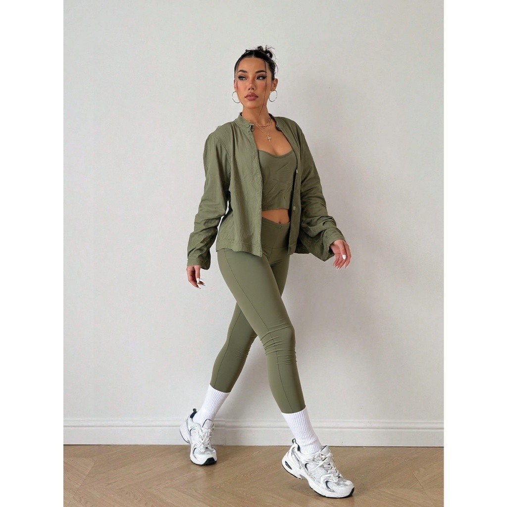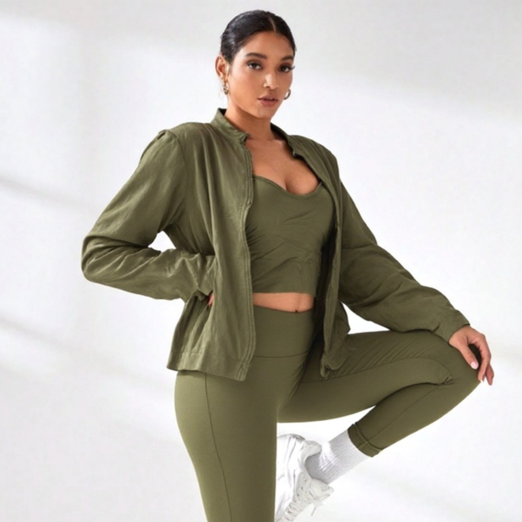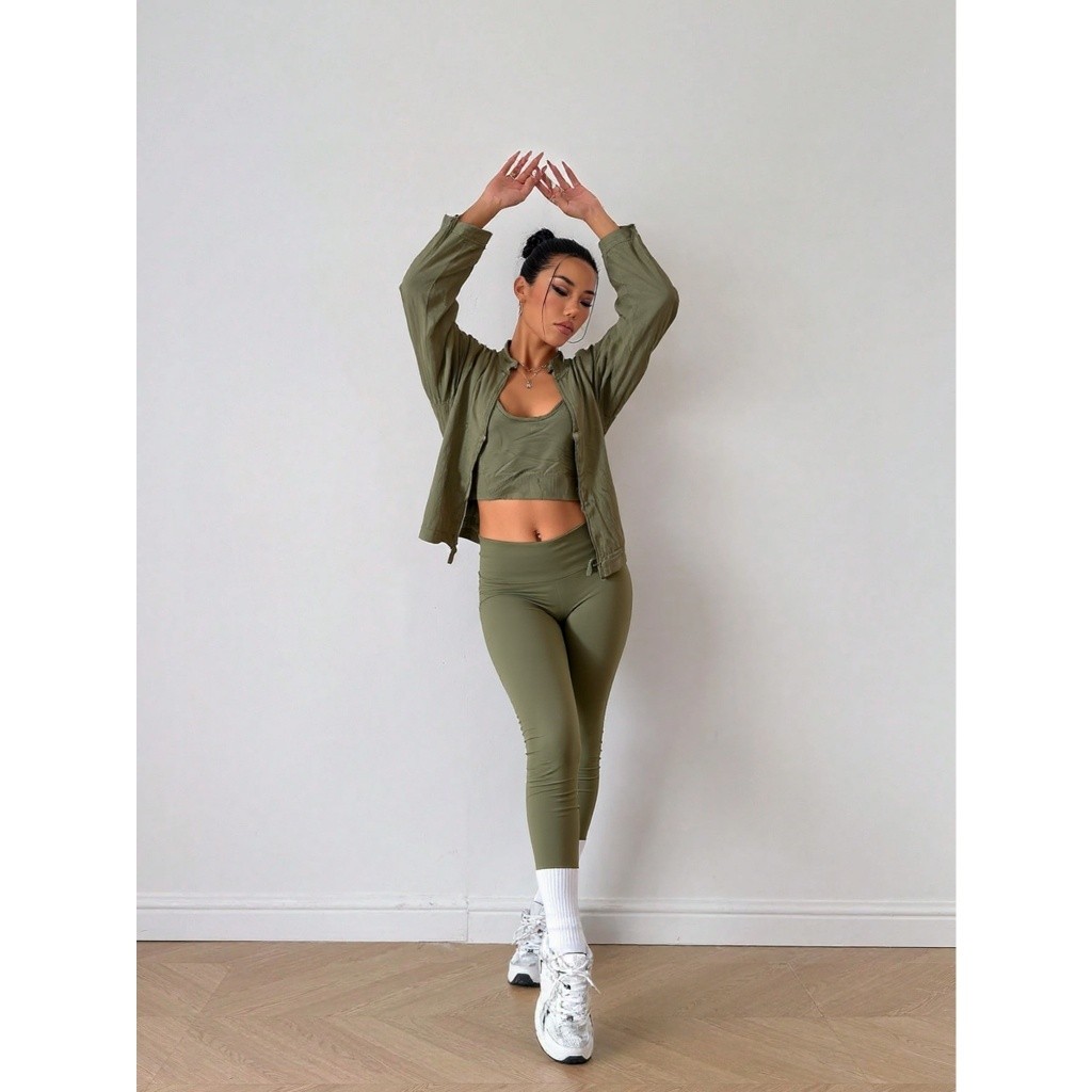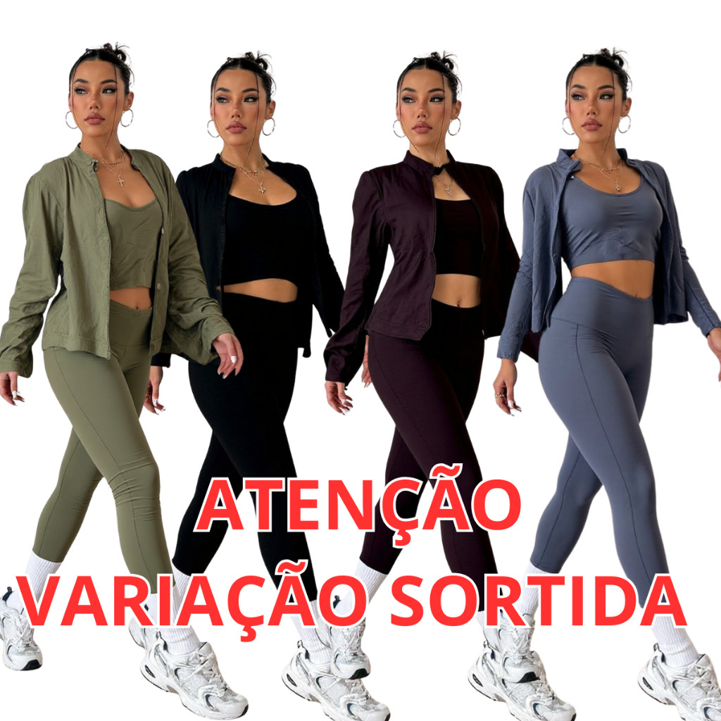 Conjunto Kit Academia Caminhada Calça Top Jaqueta de Ginástica Look Fitness