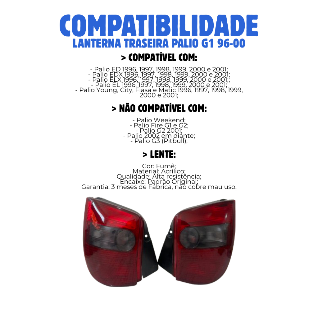 Lanterna Traseira Fume Palio Young Fiasa Matic G1 96 97 98 99 00 ED EL ELX