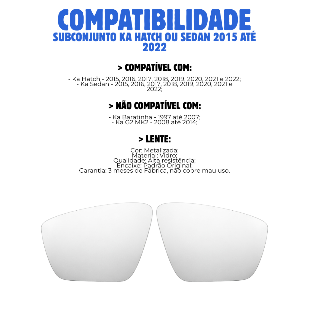 Lente Espelho Retrovisor Ka Hatch Sedan 2015 16 17 18 19 20 A 2022