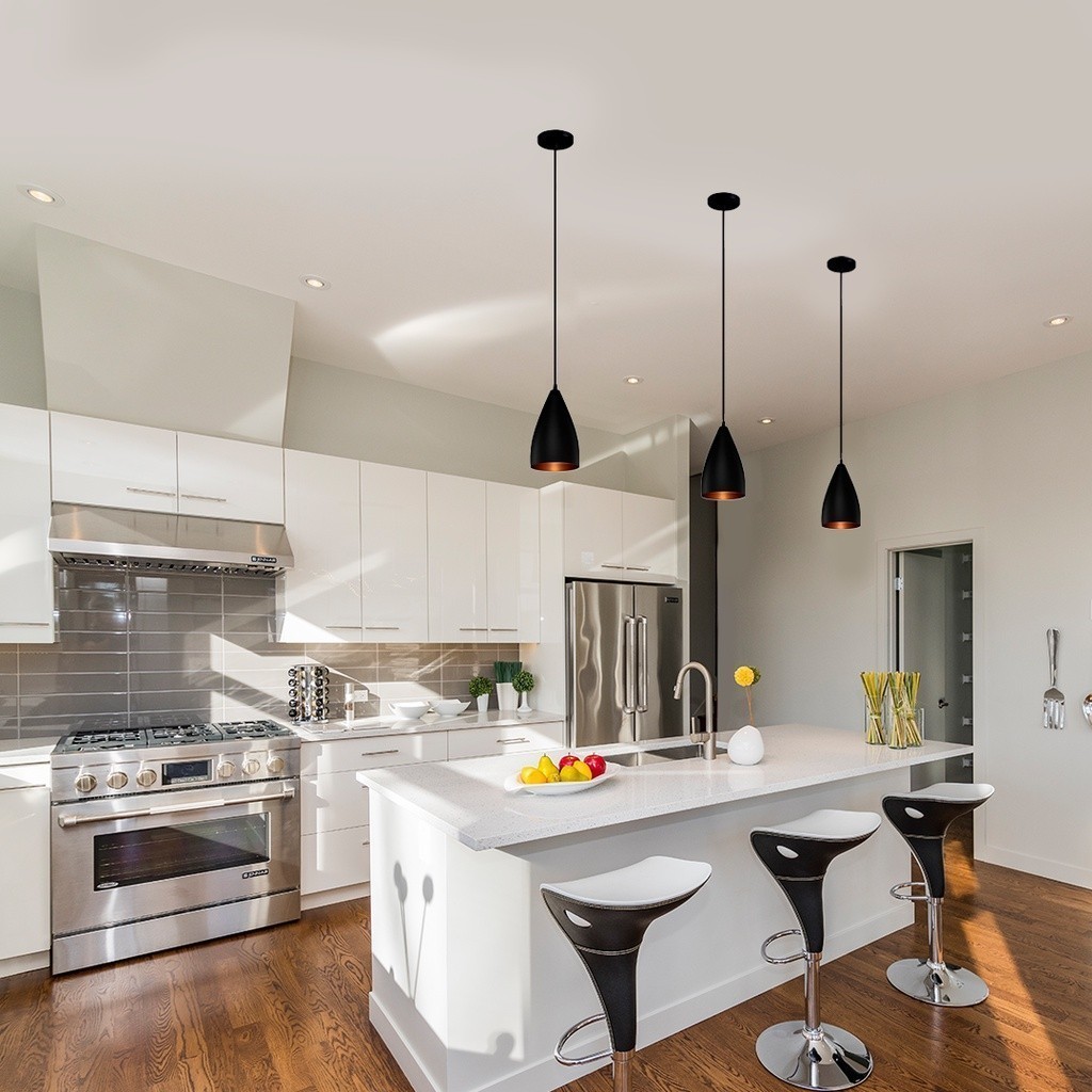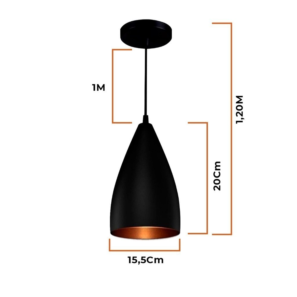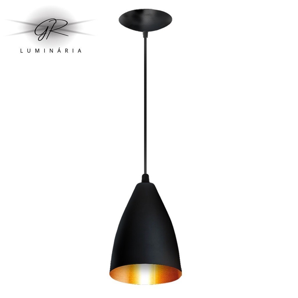Kit 3 Luminárias Pendentes Vegas Preto Interior Cobre Moderna Sala Cozinha Balcão Decoração Promoção